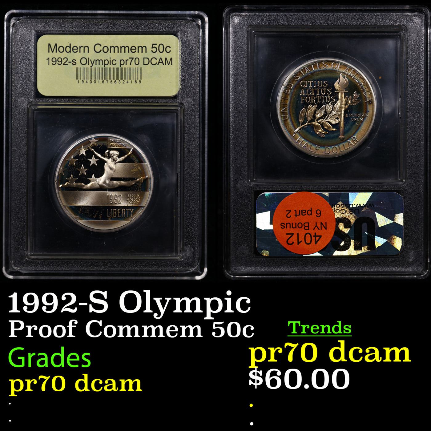 Proof 1992-S Olympic Modern Commem Half Dollar 50c Graded GEM++ Proof Deep Cameo By USCG