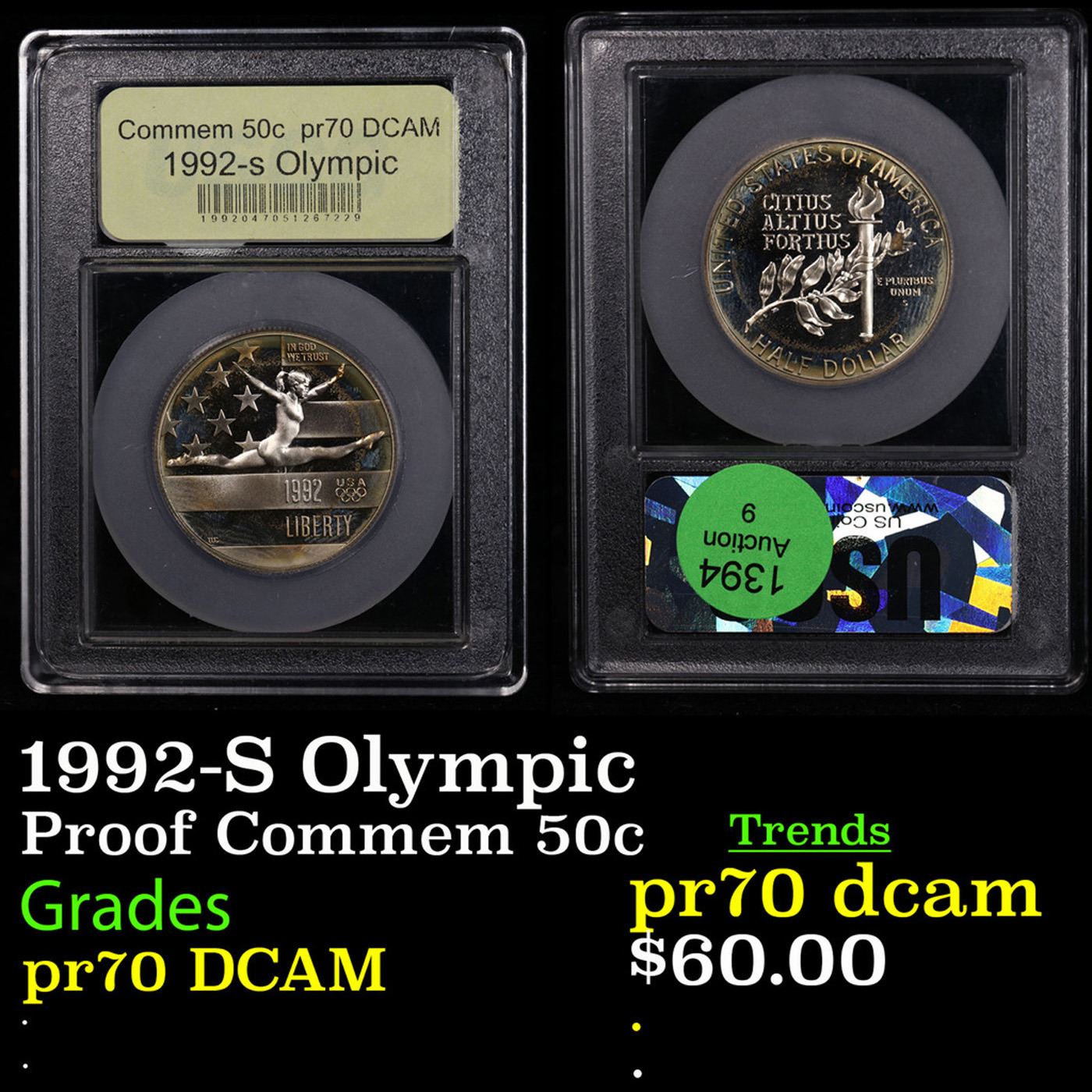 Proof 1992-S Olympic Modern Commem Half Dollar 50c Graded GEM++ Proof Deep Cameo By USCG