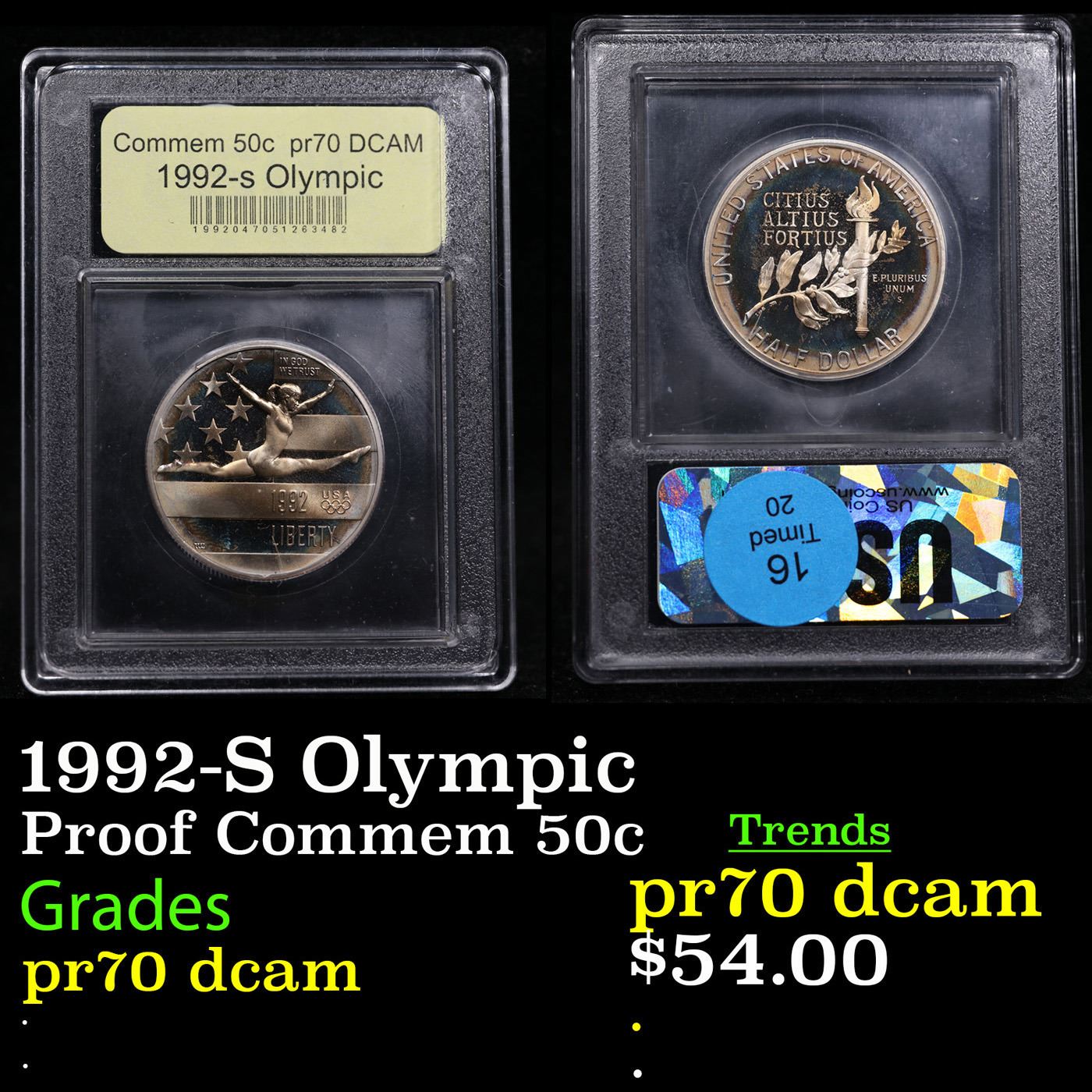 1992-S Olympic Modern Commem Half Dollar 50c Graded GEM++ Proof Deep Cameo By USCG.