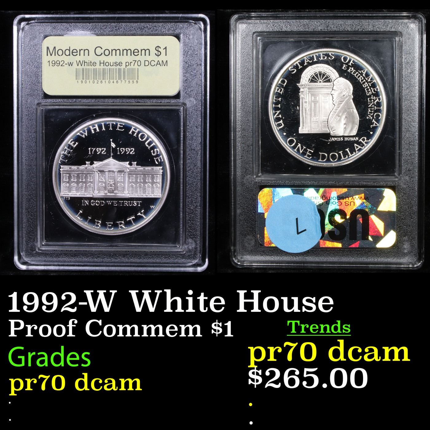 1992-W White House Modern Commem Dollar $1 Graded GEM++ Proof Deep Cameo By USCG. The 1992 White House Silver Dollar was released to mark the 200th anniversary of the White House. The cornerstone for the structure was originally placed on October 13, 1792. This proof silver dollar is graded PR70 DCAM by USCG.