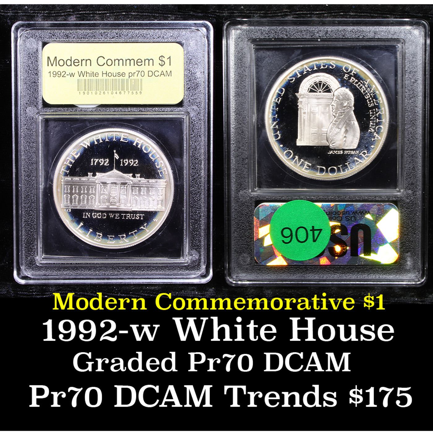 1992-W White House Modern Commem Dollar $1 Graded GEM++ Proof Deep Cameo By USCG. The 1992 White House Silver Dollar was released to mark the 200th anniversary of the White House. The cornerstone for the structure was originally placed on October 13, 1792. This proof dollar is graded Perfection Gem+++ Proof Deep Cameo by USCG.