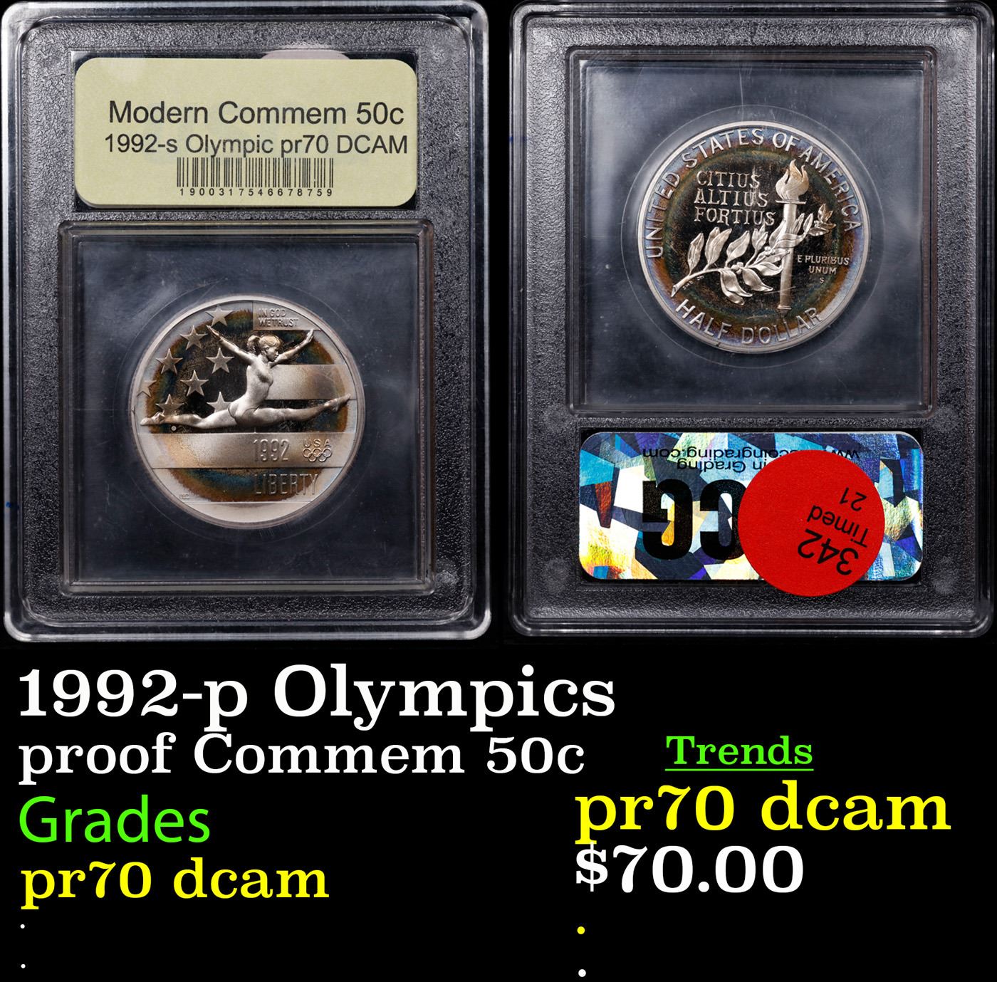 Proof 1992-p Olympics Modern Commem Half Dollar 50c Graded GEM++ Proof Deep Cameo By USCG