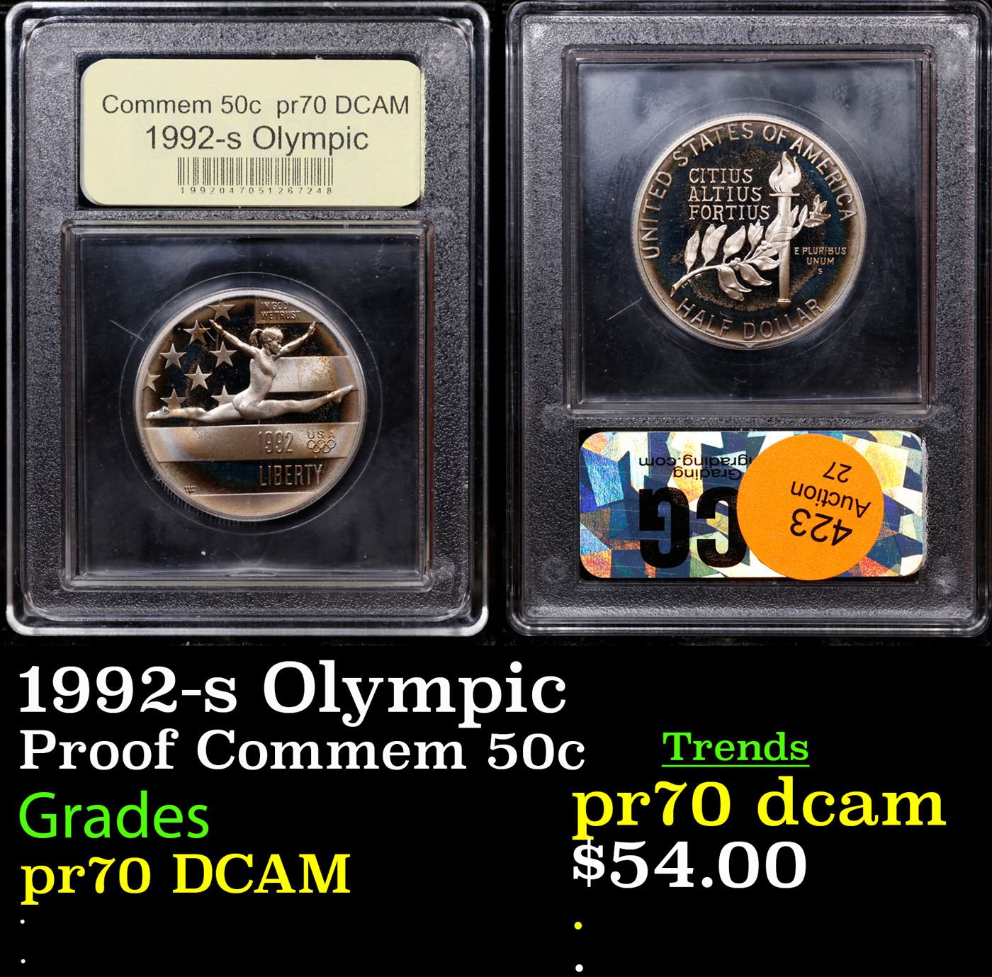 1992-s Olympic Modern Commem Half Dollar 50c Graded GEM++ Proof Deep Cameo By USCG.