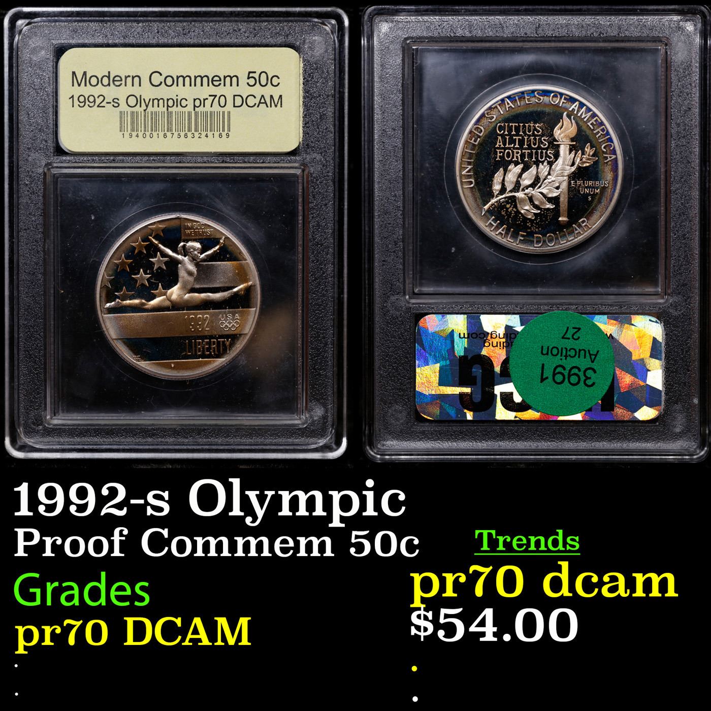 Proof 1992-s Olympic Modern Commem Half Dollar 50c Graded GEM++ Proof Deep Cameo By USCG