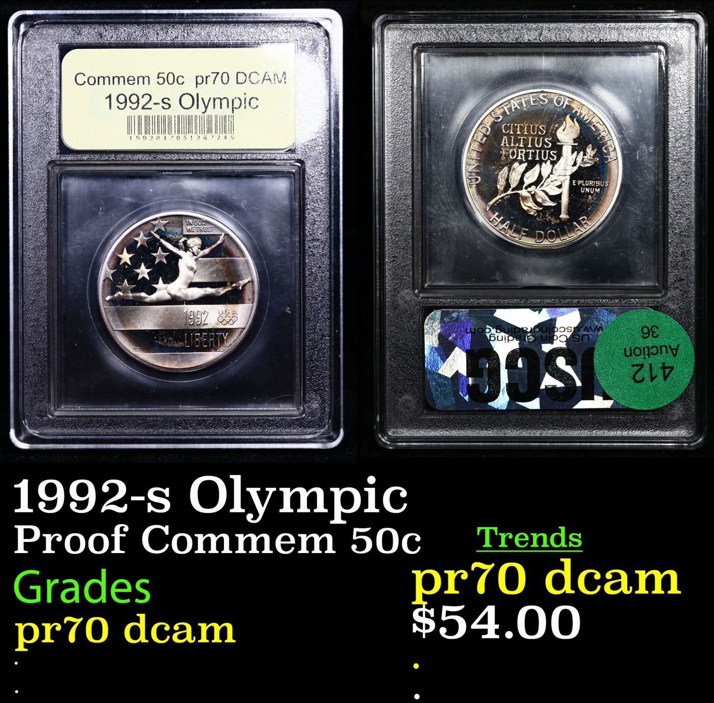 Proof 1992-s Olympic Modern Commem Half Dollar 50c Graded GEM++ Proof Deep Cameo By USCG