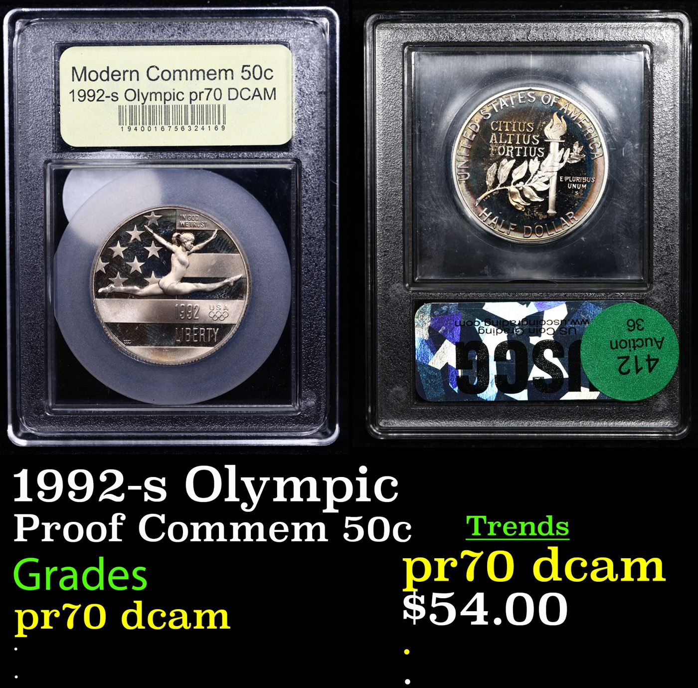 Proof 1992-s Olympic Modern Commem Half Dollar 50c Graded GEM++ Proof Deep Cameo By USCG