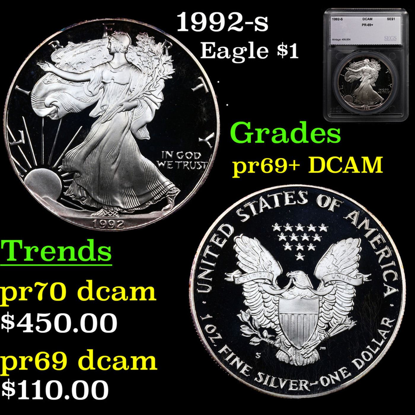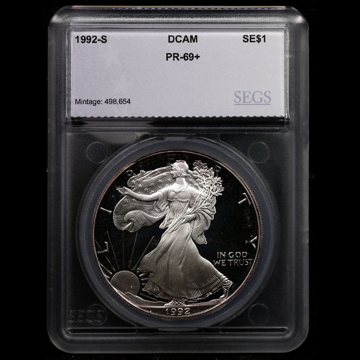 1992-s Silver Eagle Dollar $1 Graded pr69+ DCAM By SEGS.