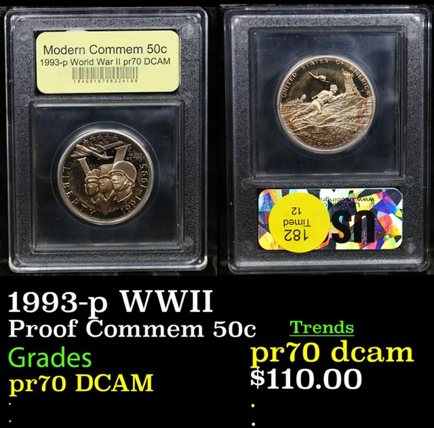 1993-p WWII Modern Commem Half Dollar 50c Graded GEM++ Proof Deep Cameo BY USCG.