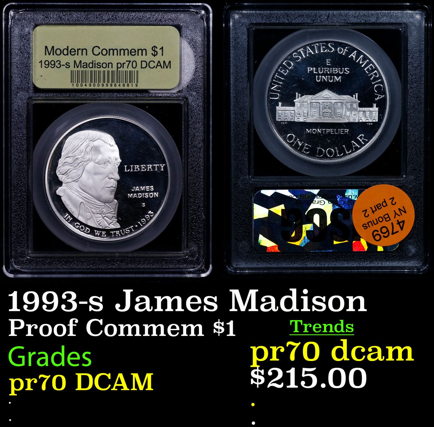 Proof 1993-s James Madison Modern Commem Dollar $1 Graded GEM++ Proof Deep Cameo By USCG