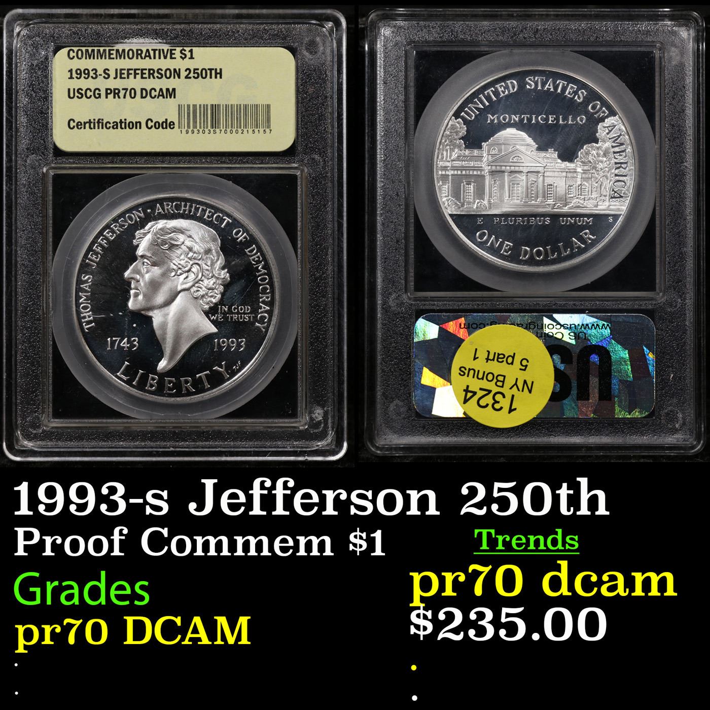 Proof 1993-s Jefferson 250th Modern Commem Dollar $1 Graded GEM++ Proof Deep Cameo By USCG
