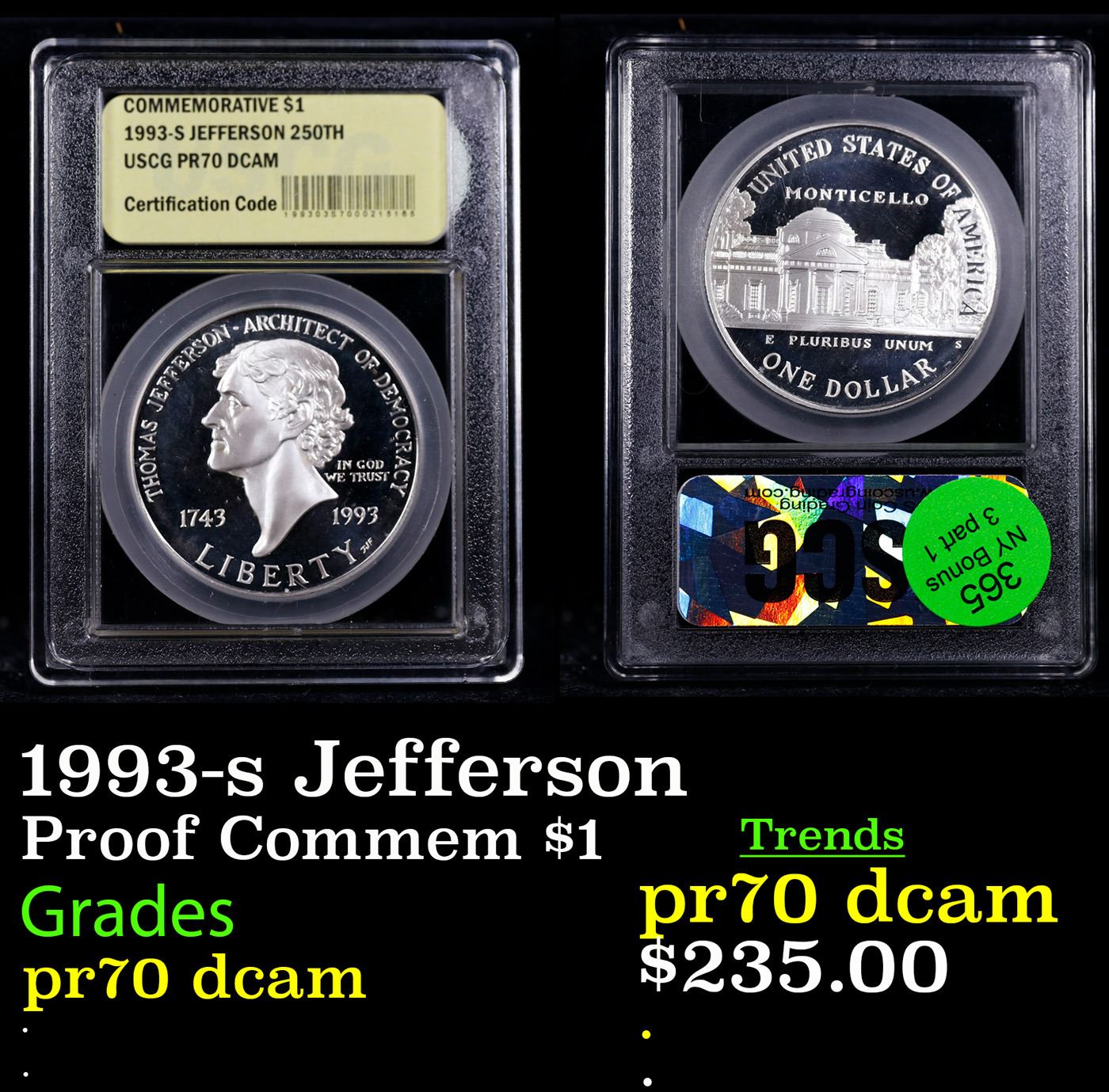 1993-s Jefferson Modern Commem Dollar $1 Graded GEM++ Proof Deep Cameo BY USCG.