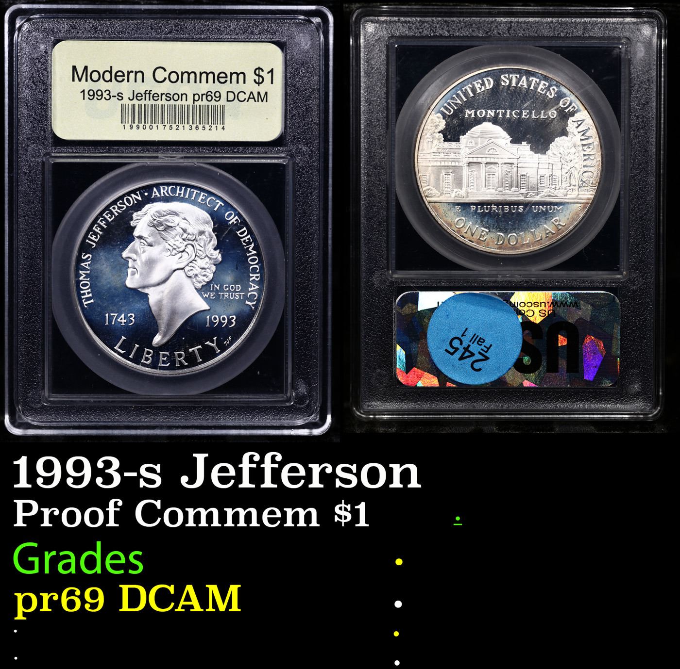 1993-s Jefferson Modern Commem Dollar $1 Graded GEM++ Proof Deep Cameo By USCG.