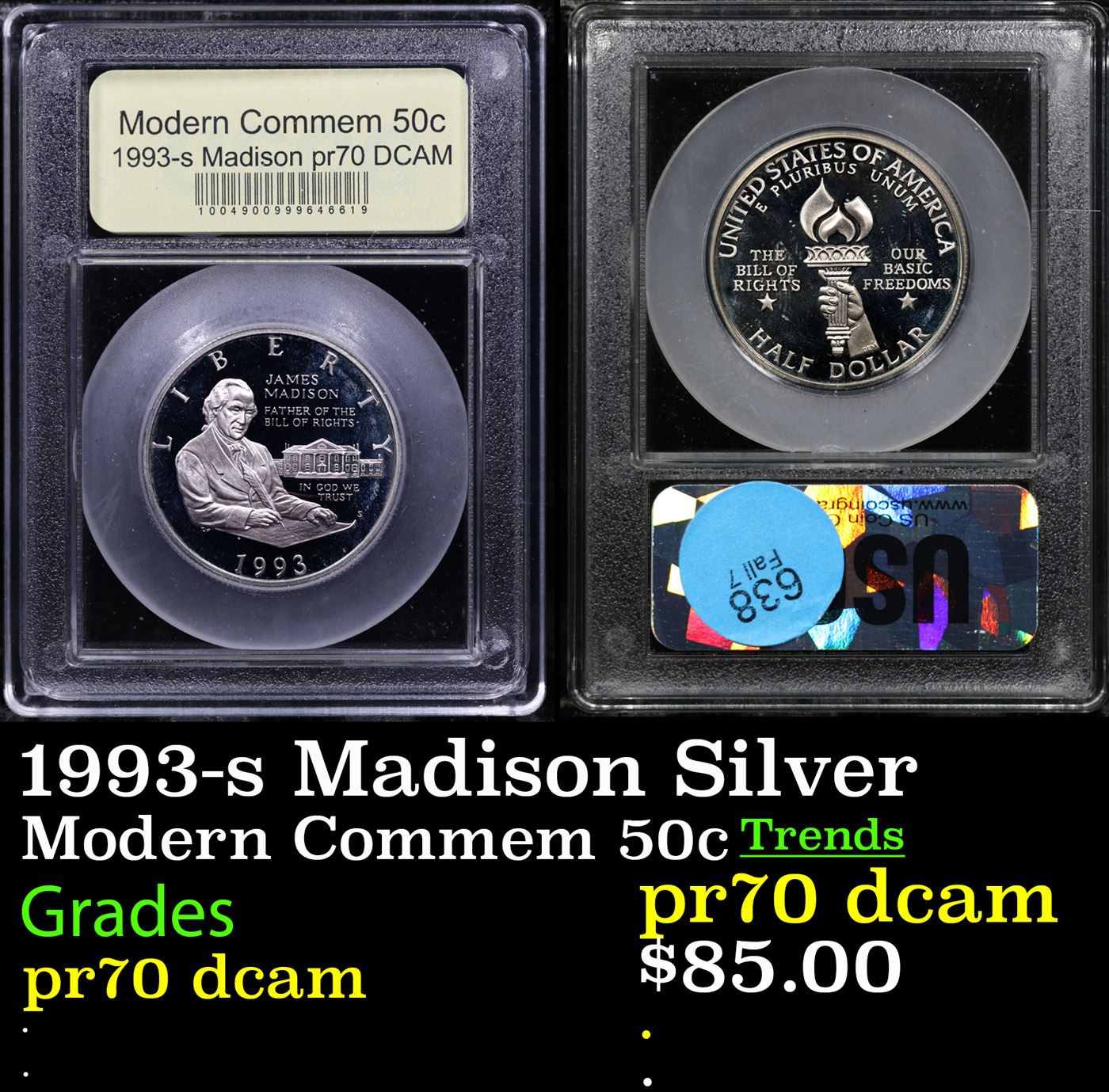1993-s Madison Silver Modern Commem Half Dollar 50c Graded pr70 dcam BY USCG.