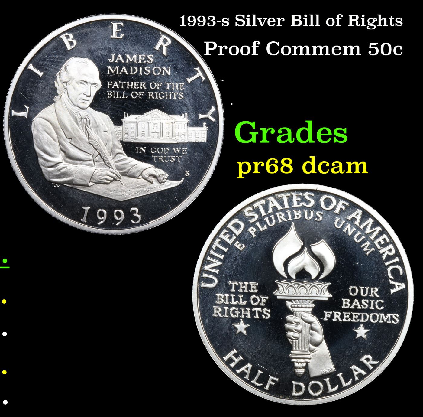 Proof 1993-s Silver Bill of Rights Modern Commem Half Dollar 50c Grades GEM++ Proof Deep Cameo