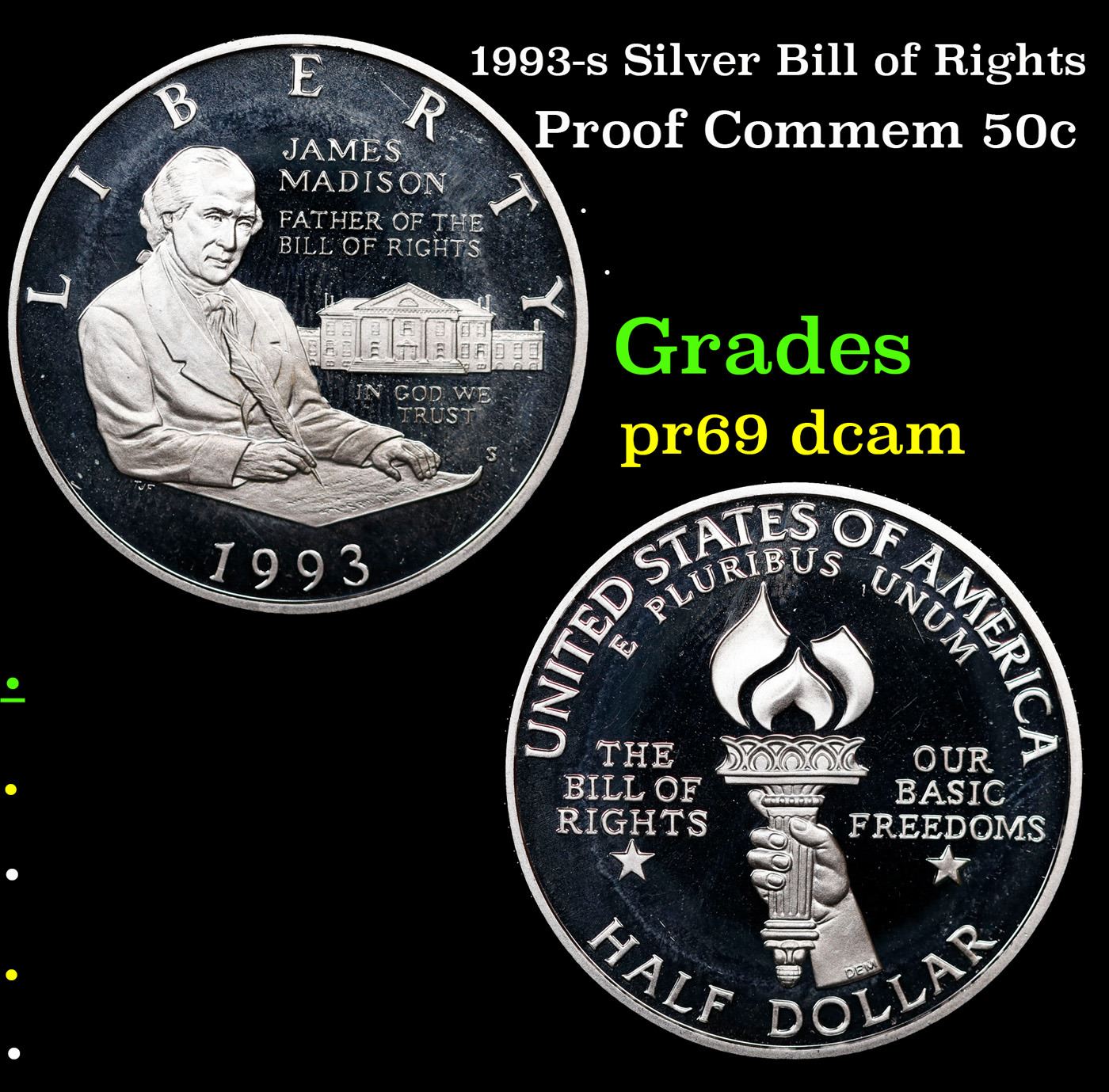 Proof 1993-s Silver Bill of Rights Modern Commem Half Dollar 50c Grades GEM++ Proof Deep Cameo