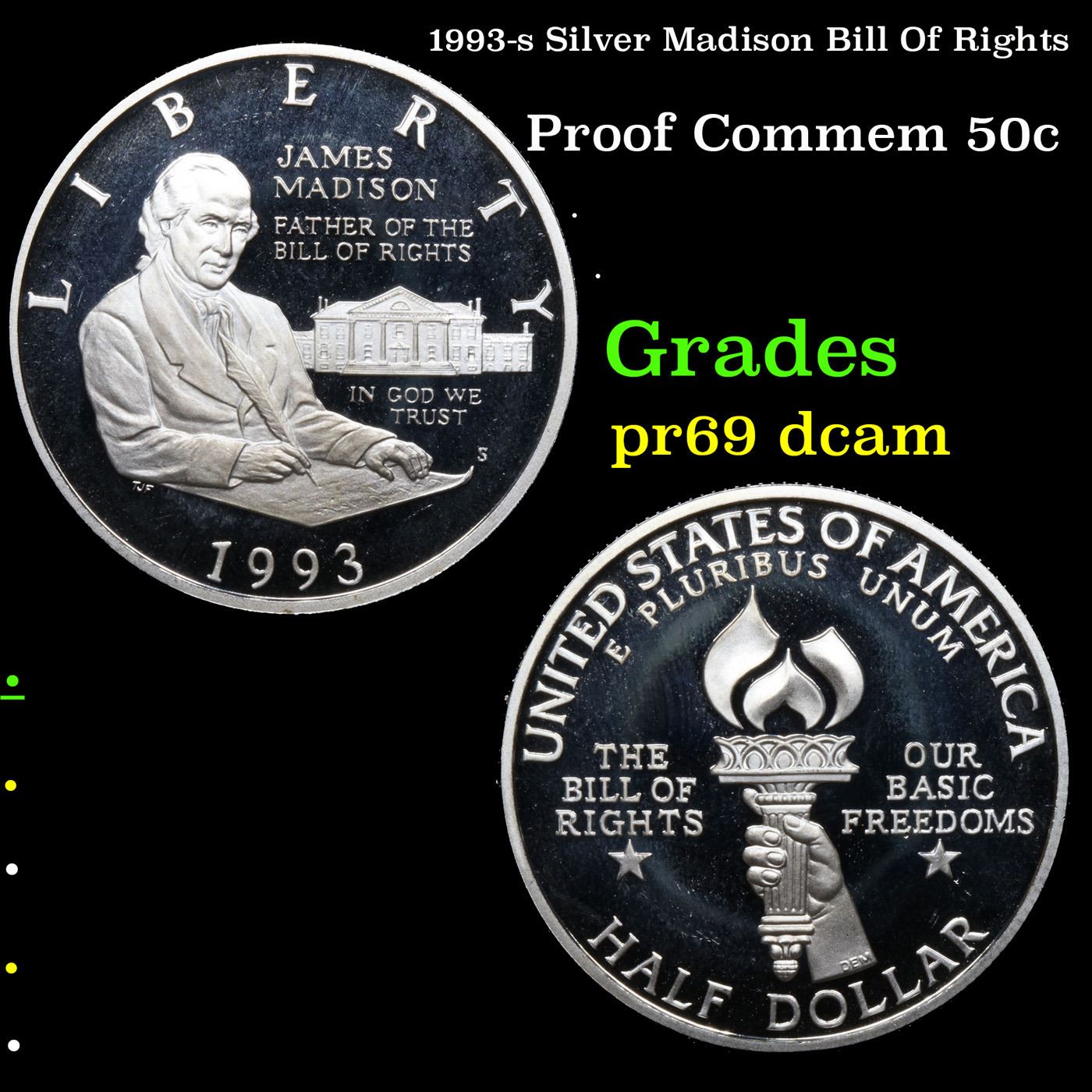 Proof 1993-s Silver Madison Bill Of Rights Modern Commem Half Dollar 50c Grades GEM++ Proof Deep Cam