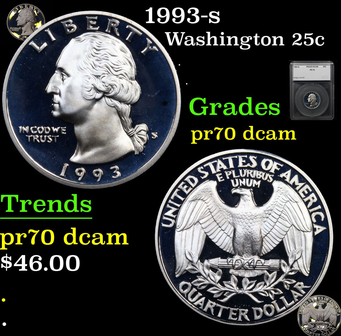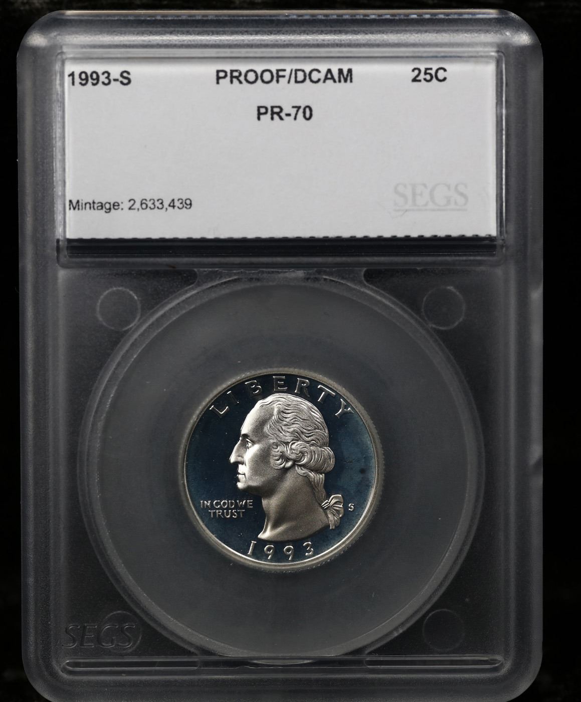 1993-s Washington Quarter 25c Graded pr70 dcam By SEGS.