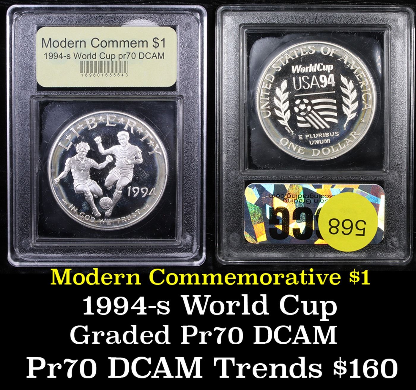 1994-S World Cup Modern Commem Dollar $1 Graded GEM++ Proof Deep Cameo By USCG. 0 The 1994 World Cup Silver Dollar was issued as part of a three coin program to celebrate the XV FIFA World Cup playoff. This Perfect coin is graded PR70 Deep cameo by USCG.
