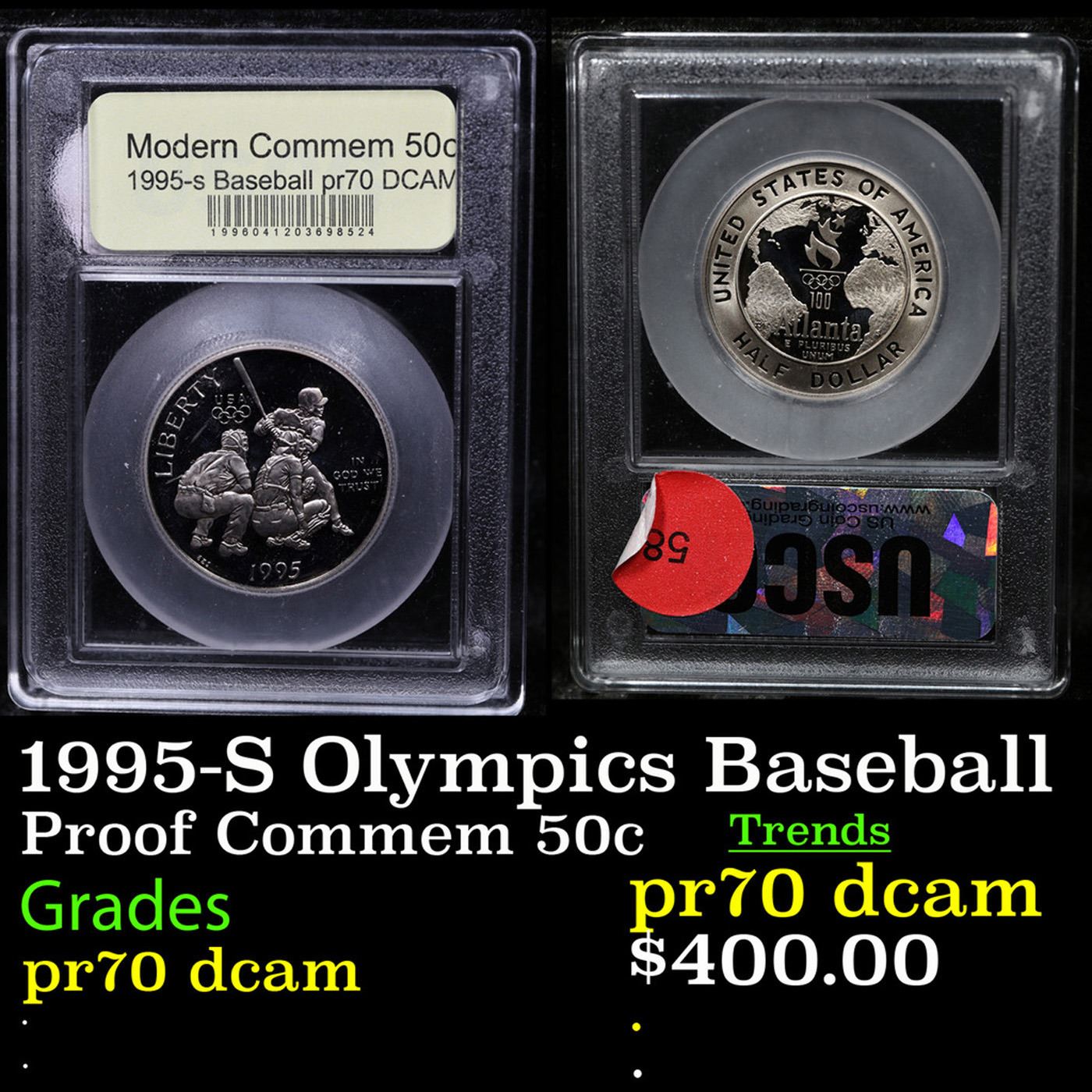 Proof . 1995-S Olympics Baseball Modern Commem Half Dollar 50c Graded GEM++ Proof Deep Cameo By USCG