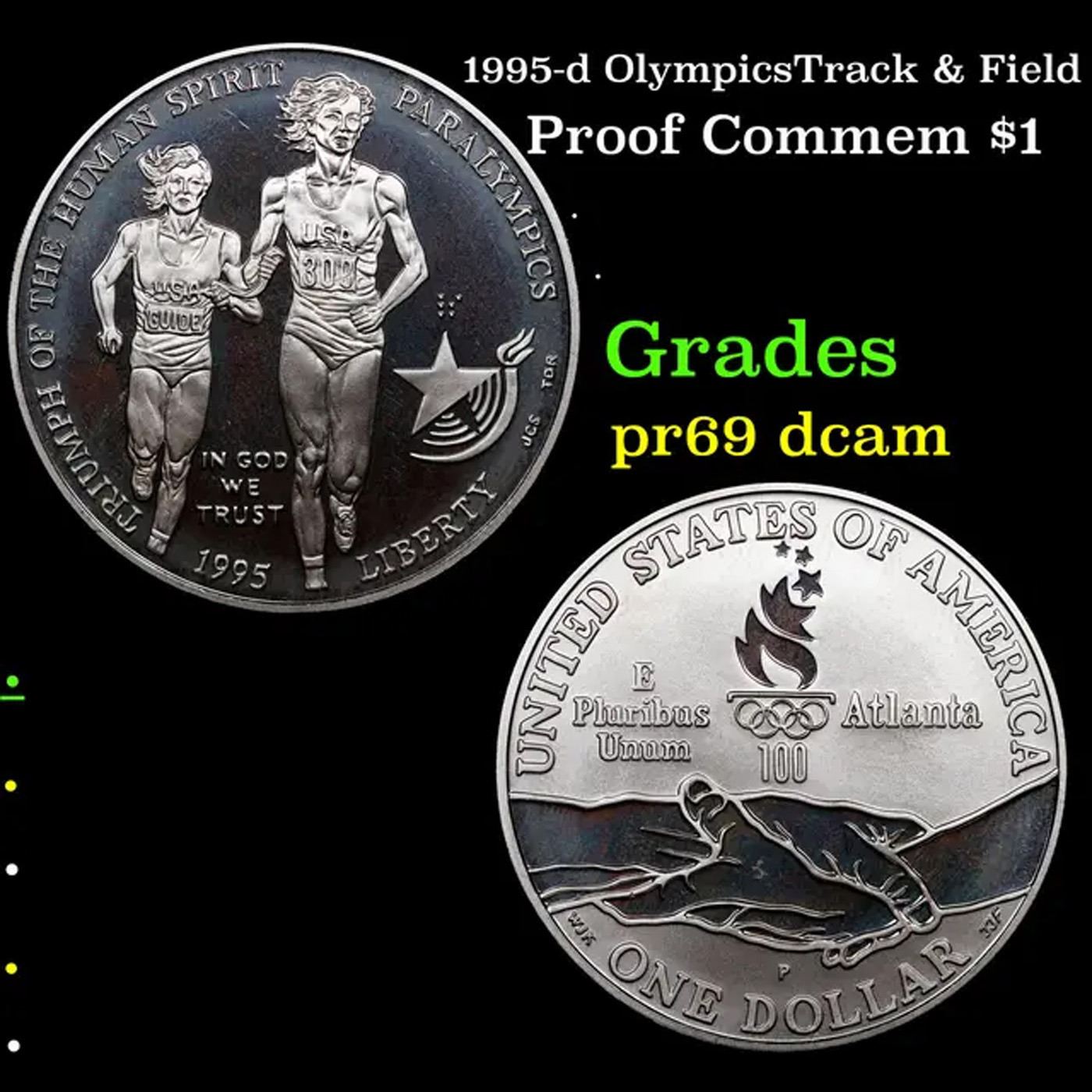 1995-d OlympicsTrack & Field Modern Commem Dollar $1 Grades GEM++ Proof Deep Cameo.
