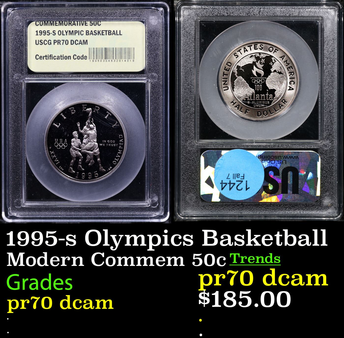 1995-s Olympics Basketball Modern Commem Half Dollar 50c Graded pr70 dcam BY USCG.