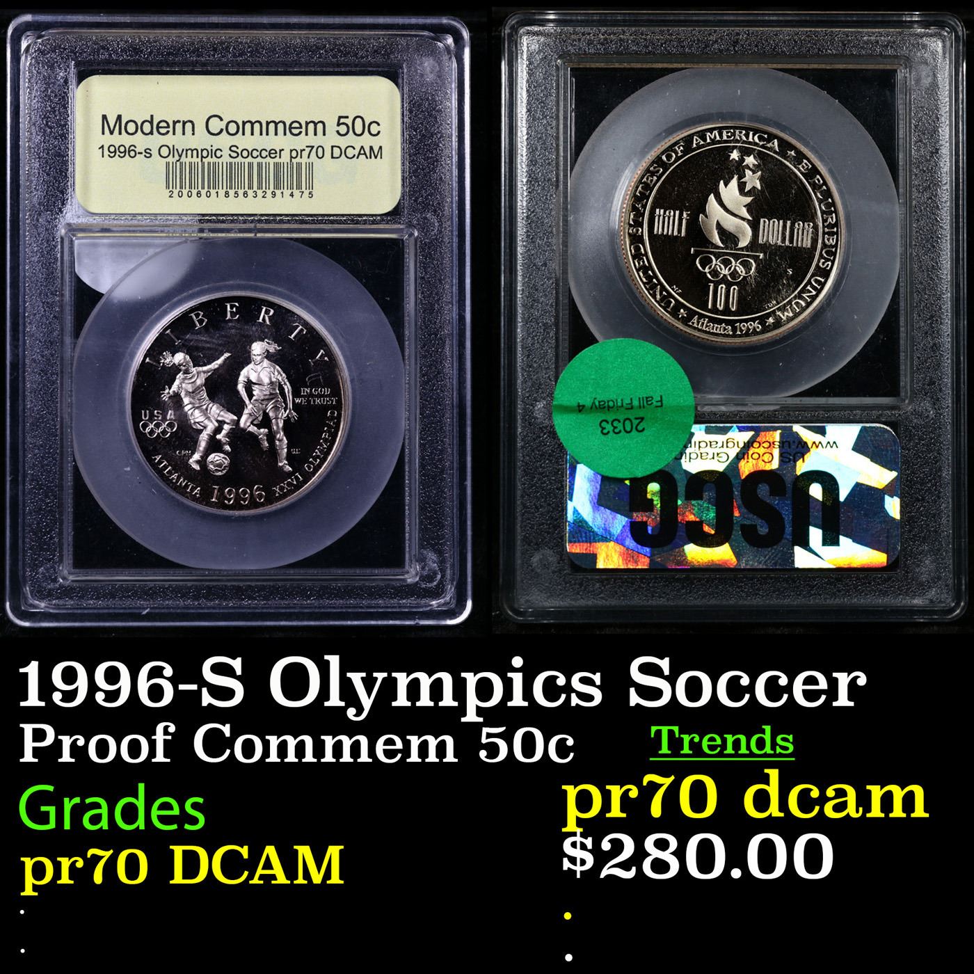 Proof 1996-S Olympics Soccer Modern Commem Half Dollar 50c Graded GEM++ Proof Deep Cameo BY USCG