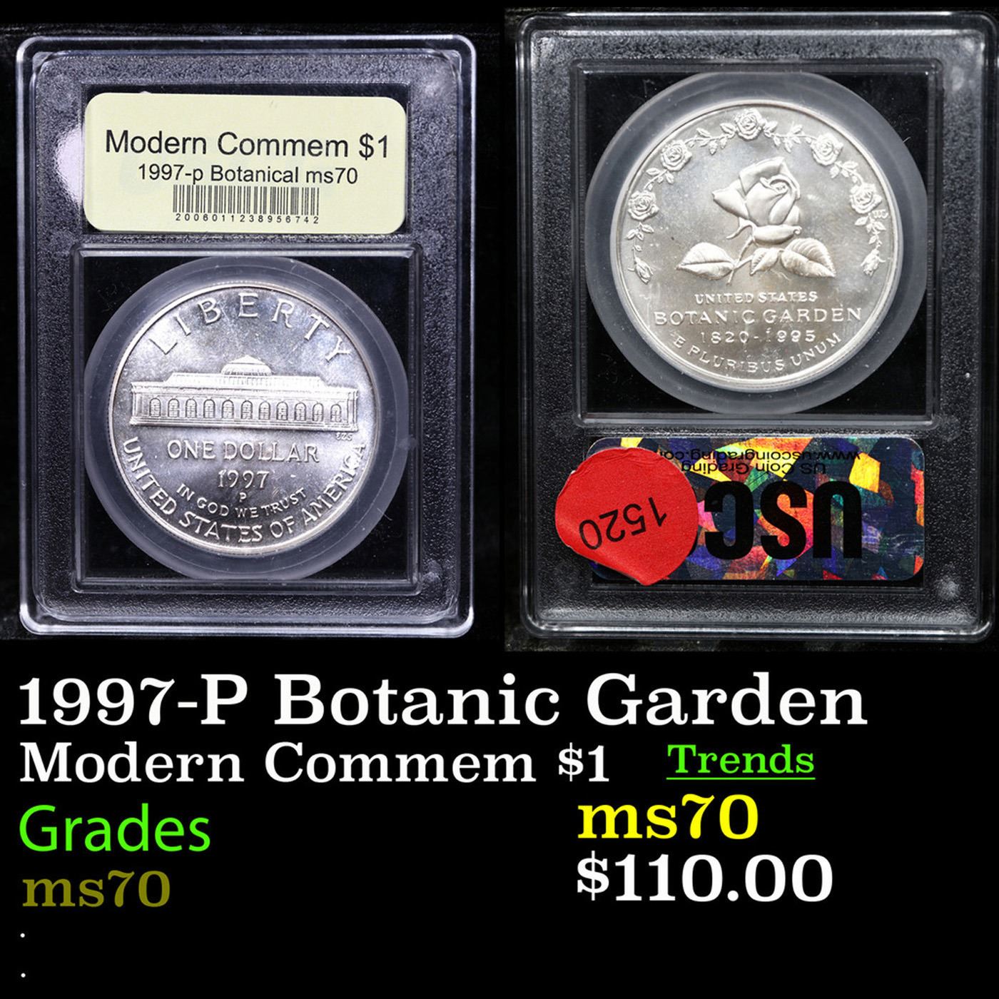Proof . 1997-P Botanic Garden Modern Commem Dollar $1 Graded GEM++ Proof Deep Cameo By USCG