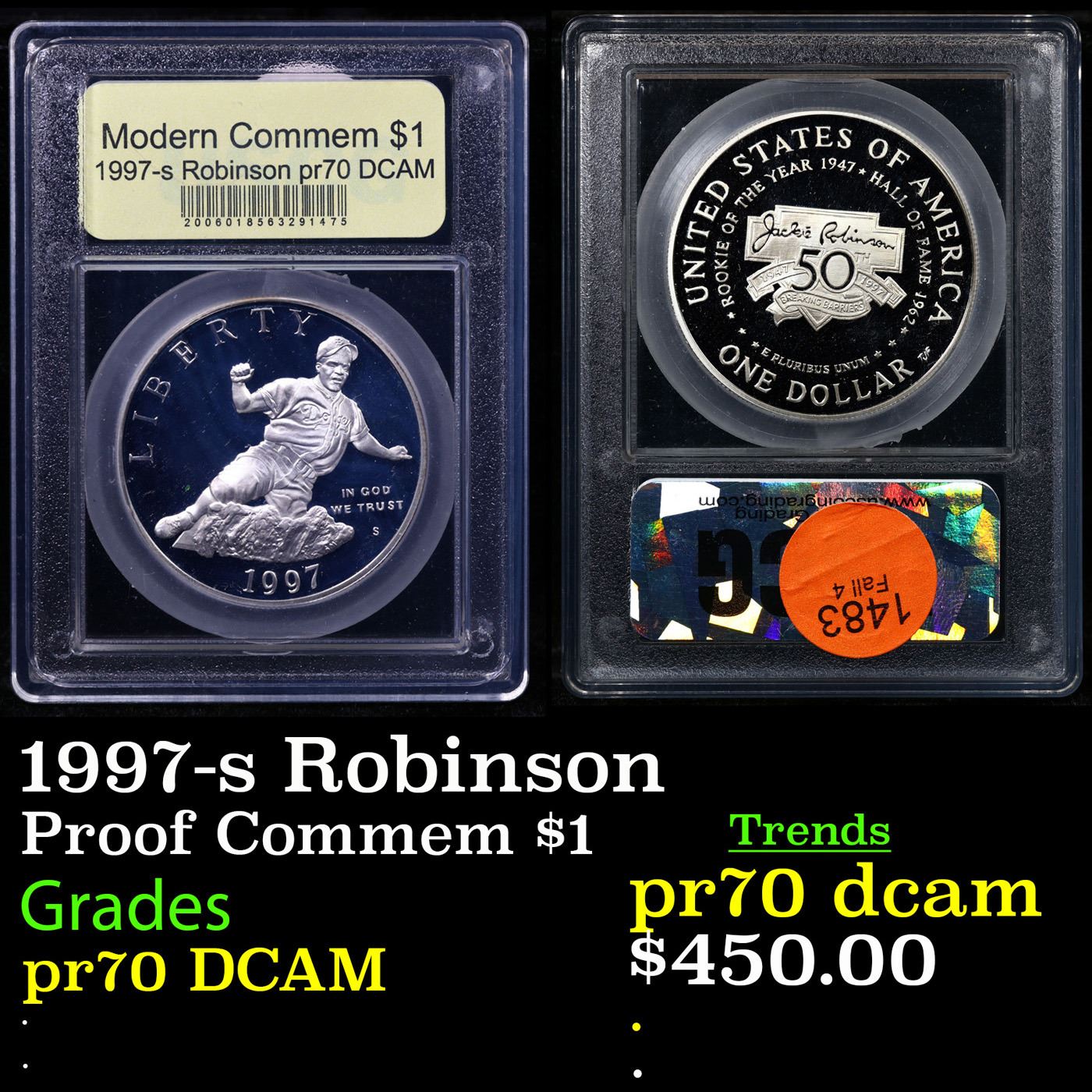 1997-s Robinson Modern Commem Dollar $1 Graded GEM++ Proof Deep Cameo BY USCG.