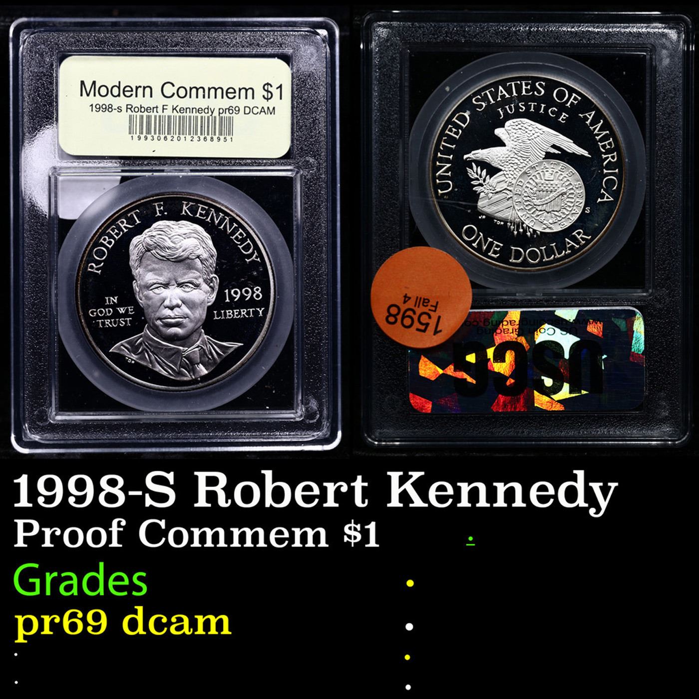 Proof 1998-S Robert Kennedy Modern Commem Dollar $1 Graded GEM++ Proof Deep Cameo BY USCG