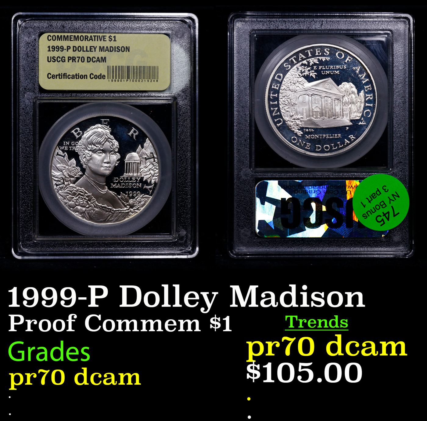 Proof 1999-P Dolley Madison Modern Commem Dollar $1 Graded GEM++ Proof Deep Cameo BY USCG