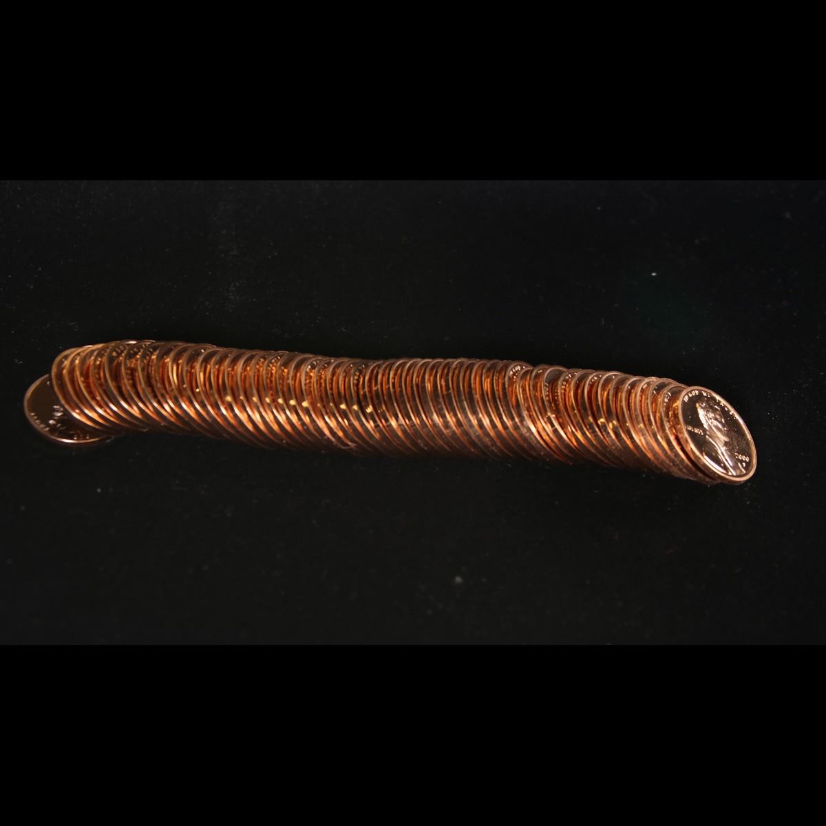 Proof 2000-s Lincoln cent 1c roll, 50 pieces (fc) . .. A terrific proof roll of Lincoln cents. All red, and deep cameo. Trends pr68rd dcam is $15/coin, Pr69 DCAM $19/coin Estimate $300