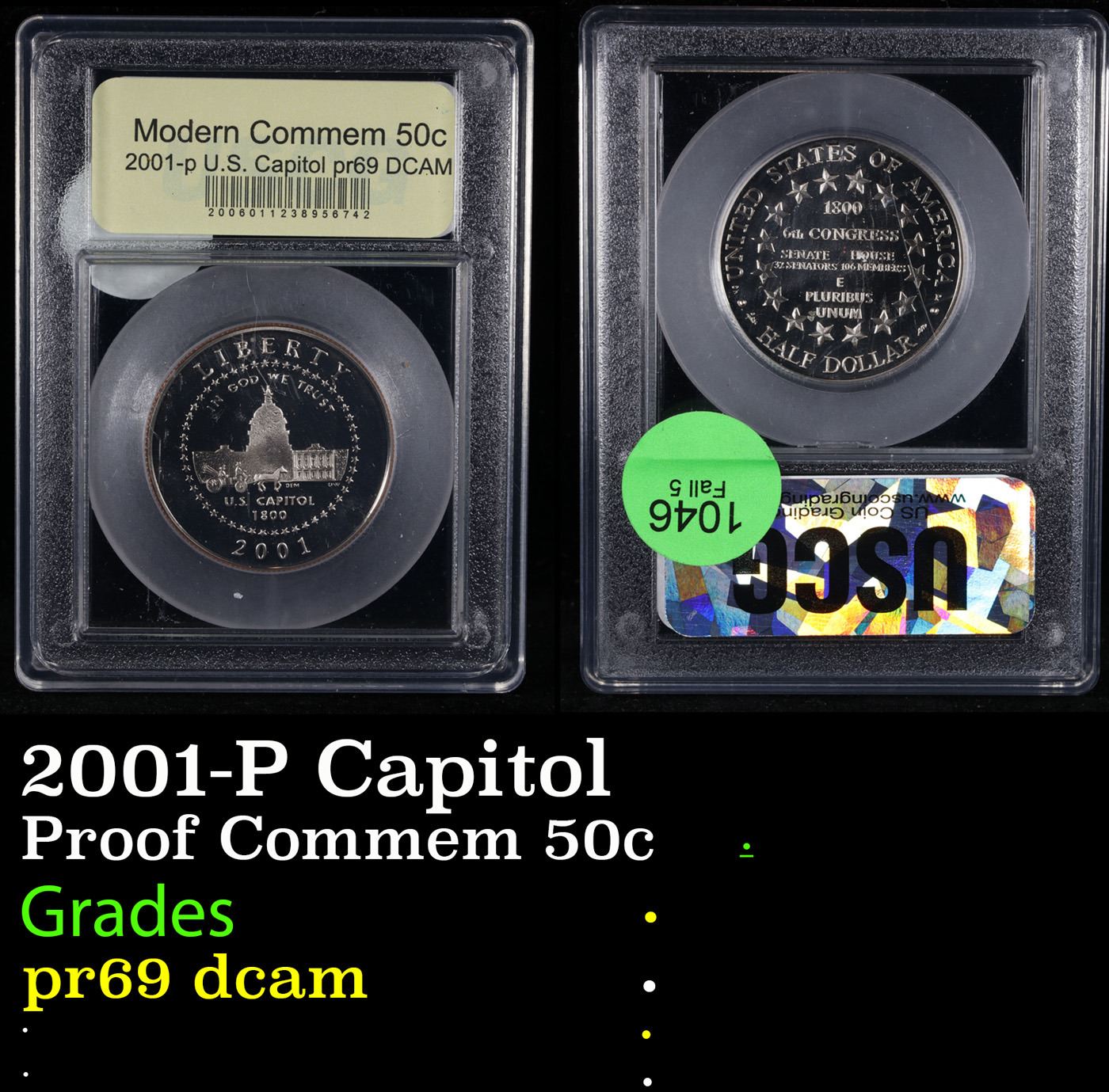 Proof 2001-P Capitol Modern Commem Half Dollar 50c Graded GEM++ Proof Deep Cameo By USCG