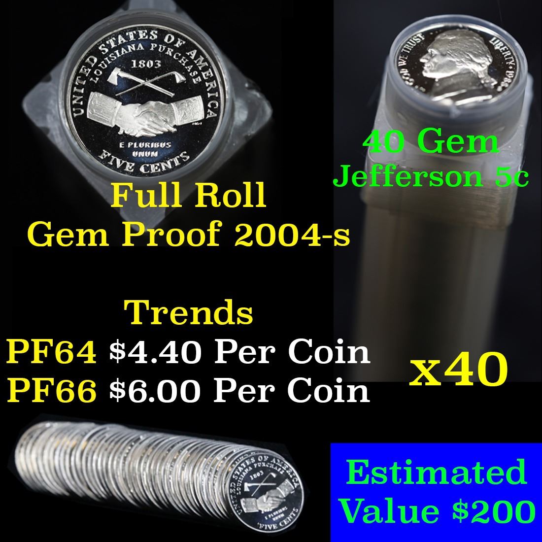 Proof 2004-s Jefferson nickel 5c roll, 40 pieces. A great proof roll of Jefferson nickels. All coins are deep cameo.