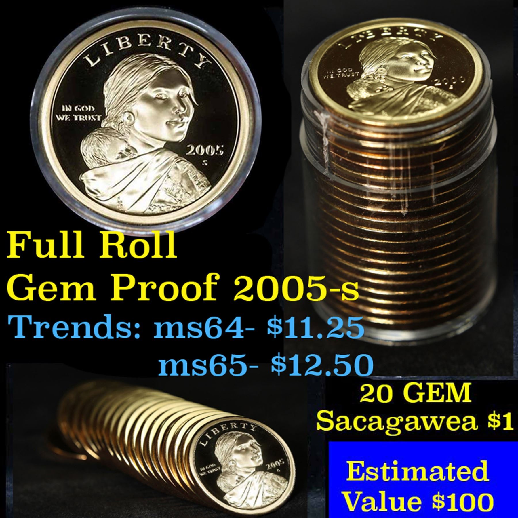 Proof 2004-s Sacagawea dollar roll $1, 20 pieces. Beautiful proof roll. All 20 coins are deep cameo. All pristine Gem+ coins. Pr65 DCAM trends $12.50/coin, $250