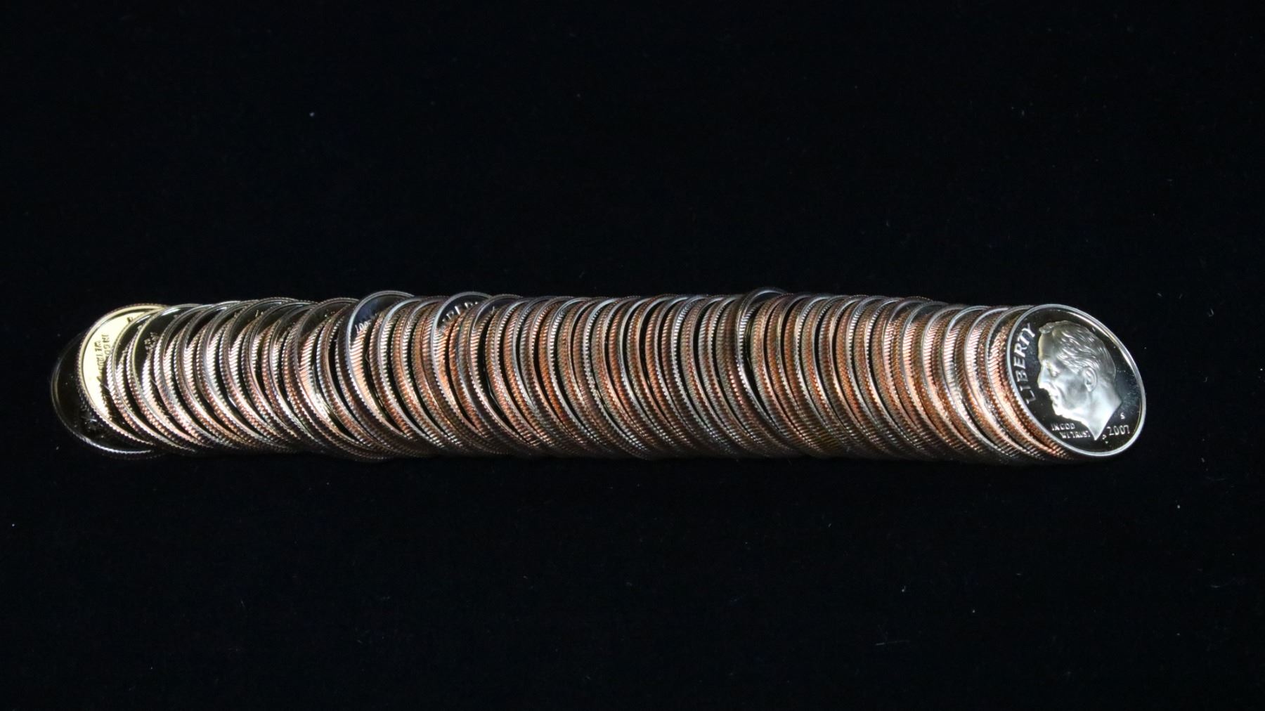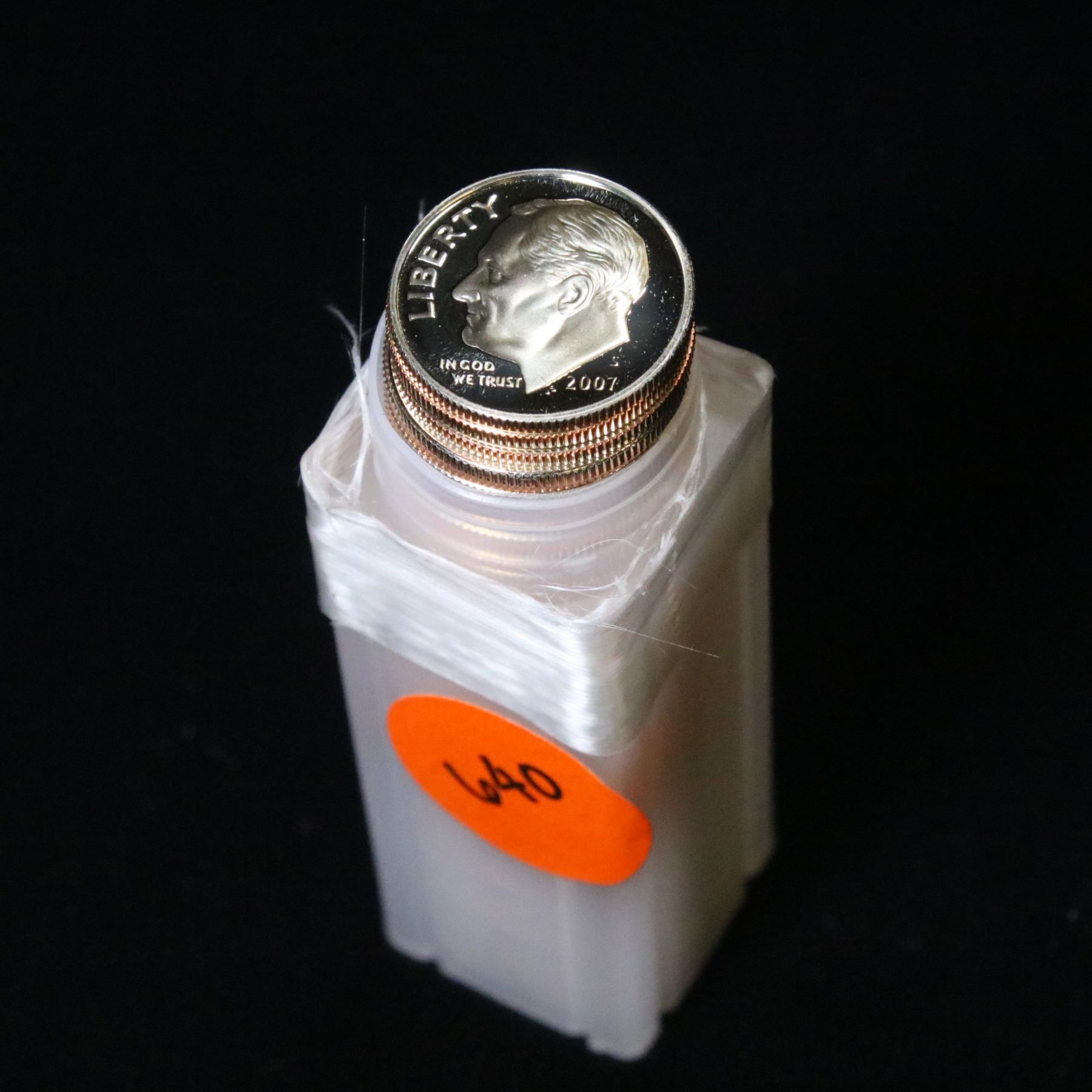 Proof 2007-s Roosevelt Dime 10c roll, 50 pieces. A great roll of proof Roosevelt dimes. All coins are deep cameo's. Pr65Cam trends $5/coin, $250