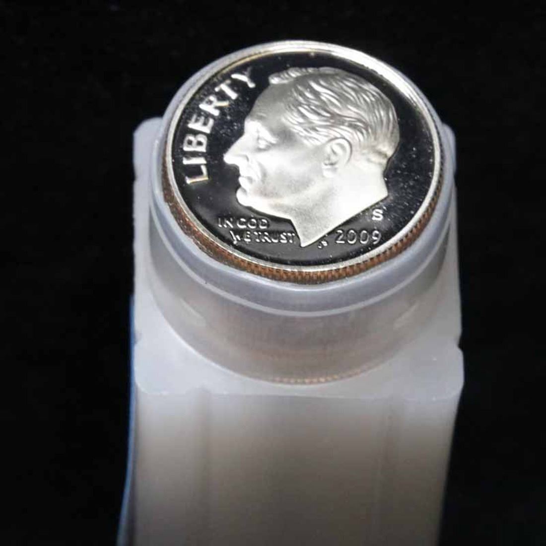Proof 2009-s Roosevelt Dime 10c roll, 50 pieces (fc). A great roll of proof Roosevelt dimes. Some cameo's and deep cameo's. Pr65 dCam trends $5.50/coin, $275