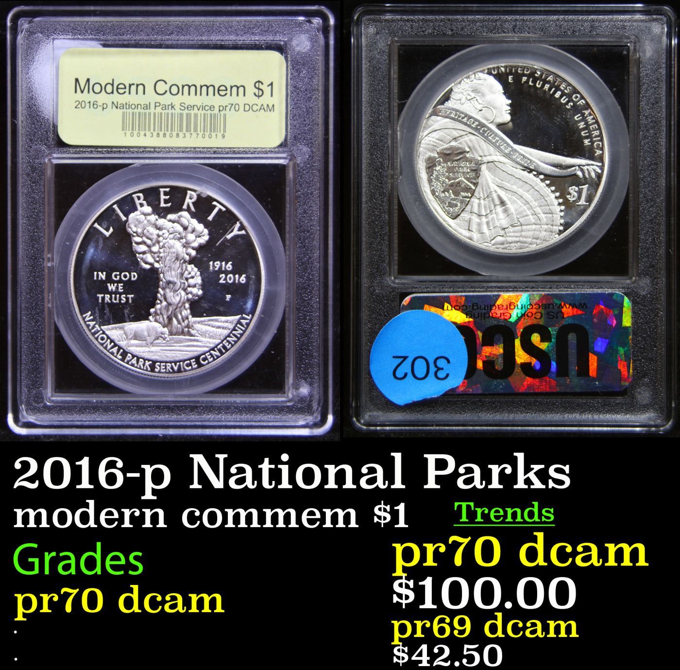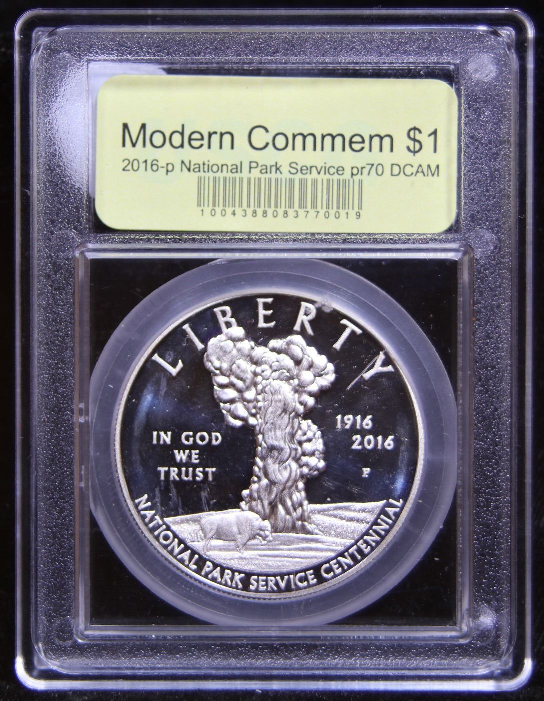 2016-p National Parks Modern Commem Dollar $1 Graded GEM++ Proof Deep Cameo By USCG. The U.S. Mint released the National Park Service 100th Anniversary $1 Silver Coin in 2016 to commemorate the centennial of the National Park Service. The coin is part of the National Park Service 100th Anniversary Commemorative Coin Program. The program includes a $5 gold coin, $1 silver coin, and half dollar clad coin with different obverse and reverse designs.