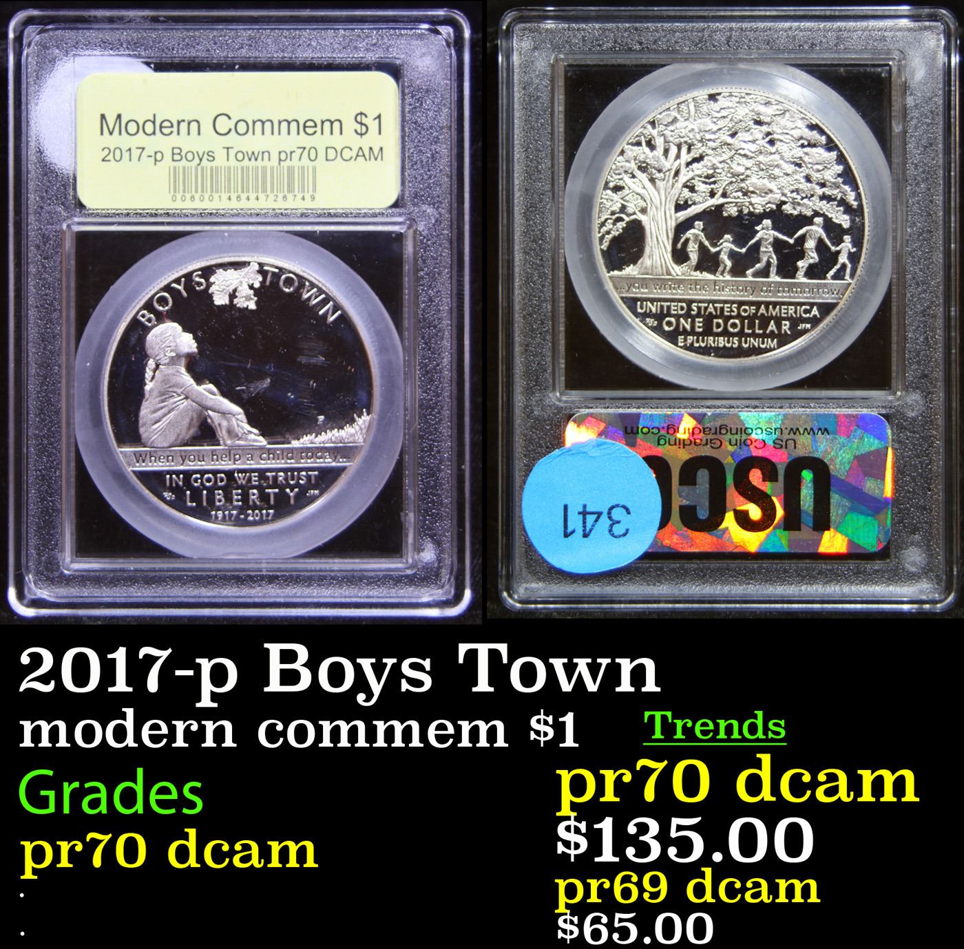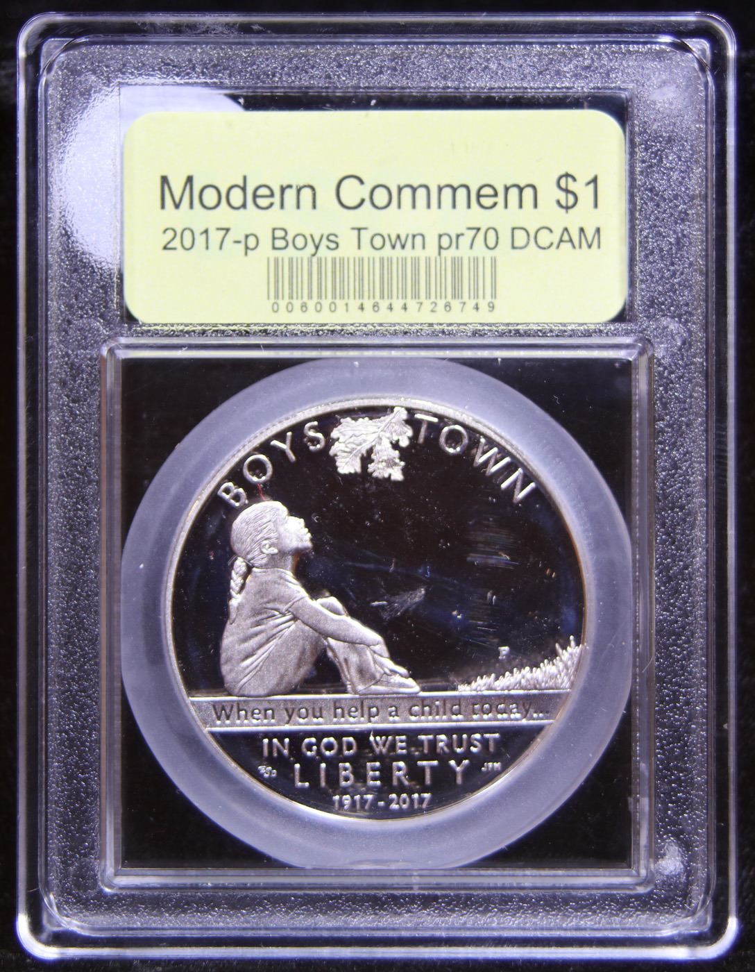 2017-p Boys Town Modern Commem Dollar $1 Graded GEM++ Proof Deep Cameo By USCG. A century ago, Father Edward Flanagan rented an old Victorian–style mansion to give displaced children a home. His boys home, which became “Boys Town,” was founded on December 12, 1917. Each year more than 2 million children and families benefit from Boys Town Programs.
