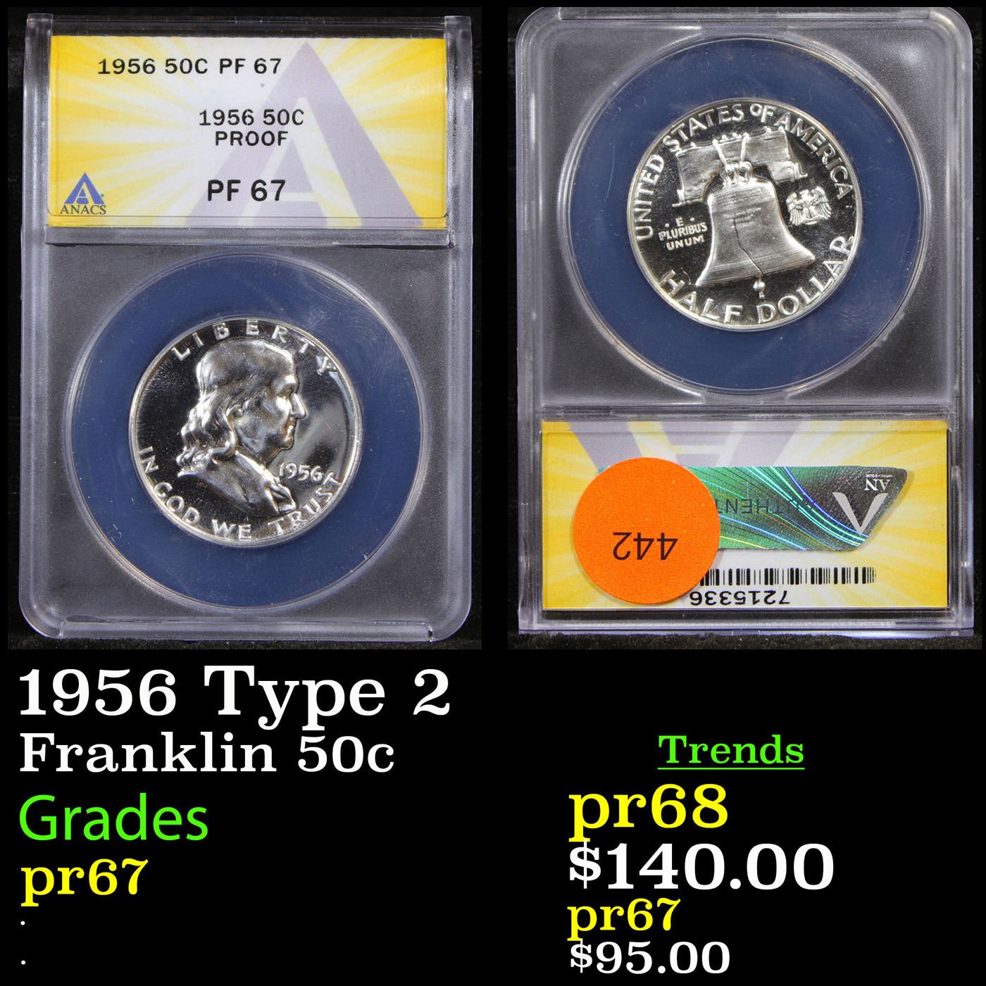 ANACS 1956 Type 2 Franklin Half Dollar 50c Graded pr67 by ANACS.