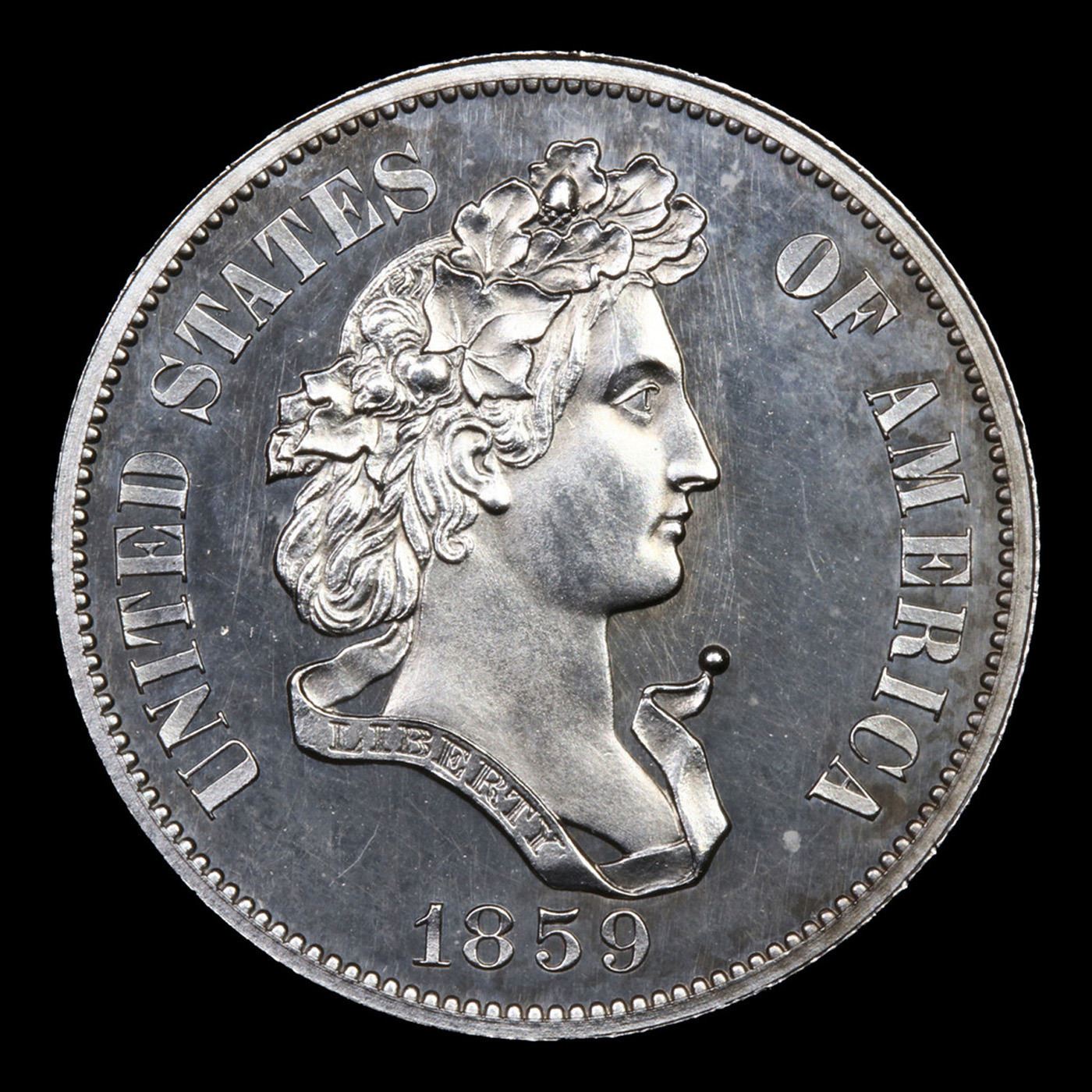 ***Auction Highlight*** 1859 'French Head of Liberty' Pattern Half Dollar 50c Judd-241 Pollock-297 Near TOP POP! Graded pr64 cam BY SEGS. James Longacre's so-called "French Head of Liberty" design for the half dollar. It is uncertain where the "French Head" name came from, as the portrait is obviously modeled after the Apollo Belvedere in Rome. The reverse displays 50 CENTS encompassed by a cereal wreath that is very similar to that introduced on the issued 1860 Seated dime, although much larger in scale. Struck in silver with a reeded edge. Both silver and copper examples were struck with from this die pairing. It is believed that around 50 silver examples exist today. This is an all-brilliant example with good depth of reflectivity in the fields and thick mint frost over the devices. A Corey's Pick, Bid to Win, Don't let it get Away, you might not find its equal Coin. I give this coin my highest recommendation