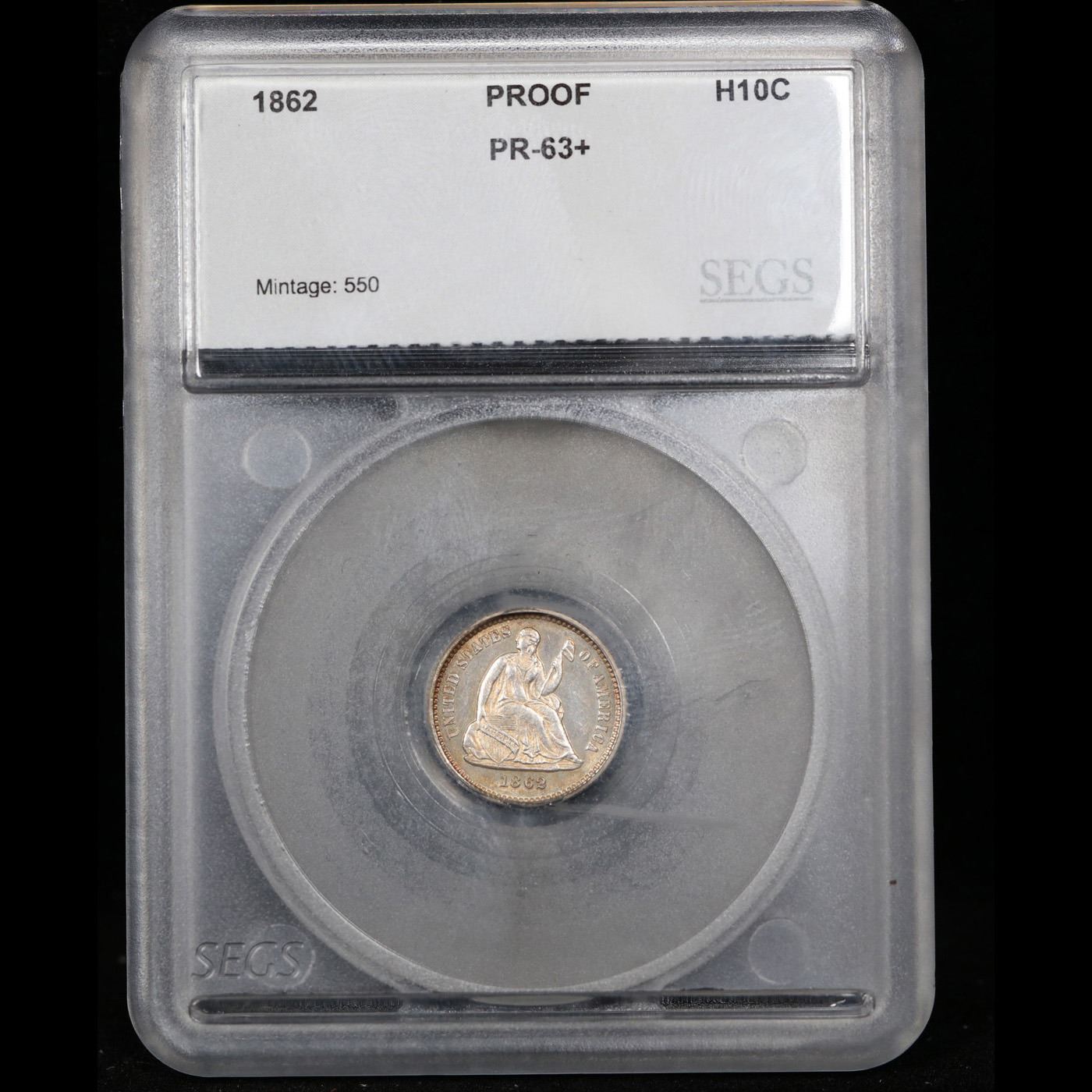 Proof ***Auction Highlight*** 1862 Seated Liberty Half Dime 1/2 10c Graded pr63+ By SEGS (fc)