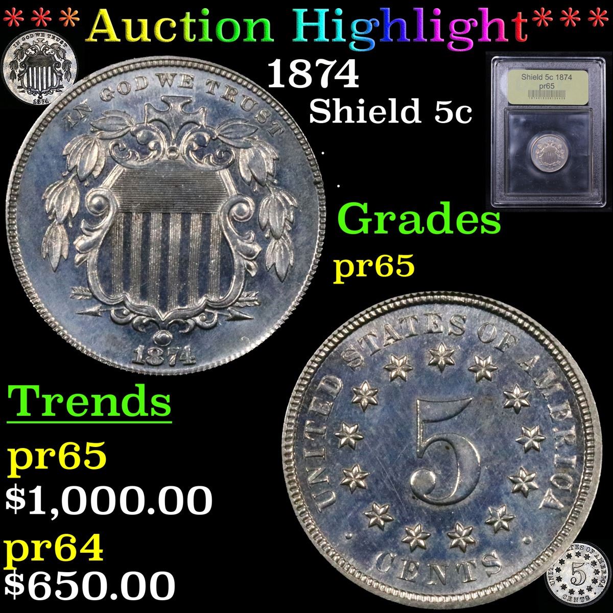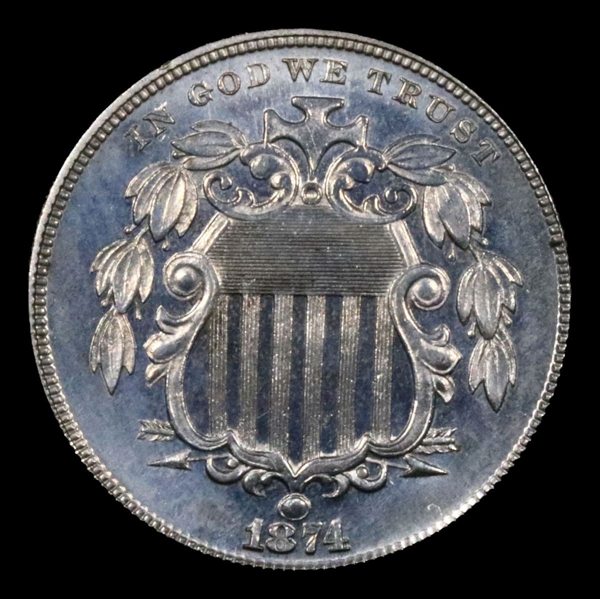 ***Auction Highlight*** 1874 Shield Nickel 5c Graded GEM Proof By USCG. A Corey's Pick, Bid to Win Coin