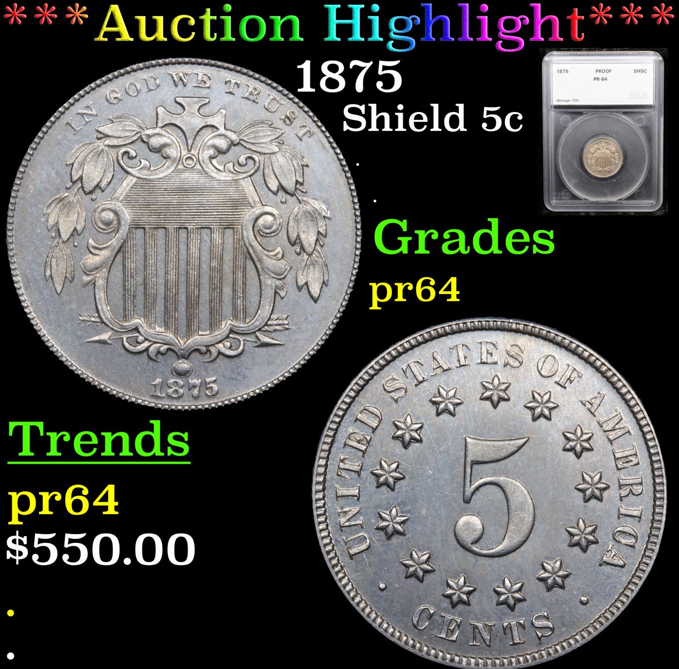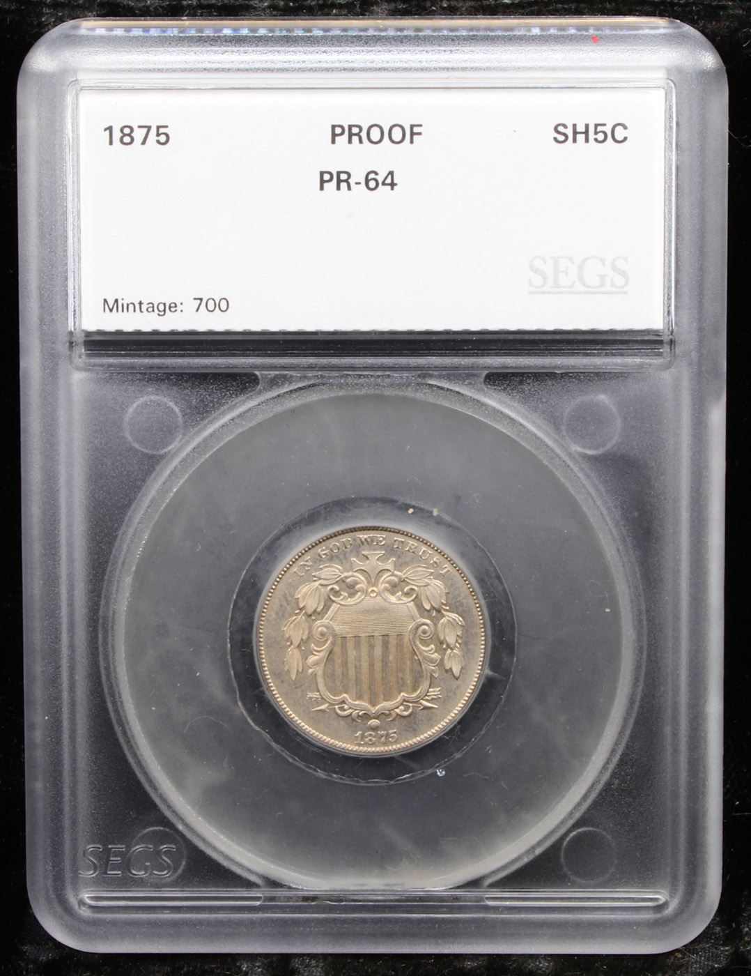 ***Auction Highlight*** 1875 Shield Nickel 5c Graded pr64 By SEGS.