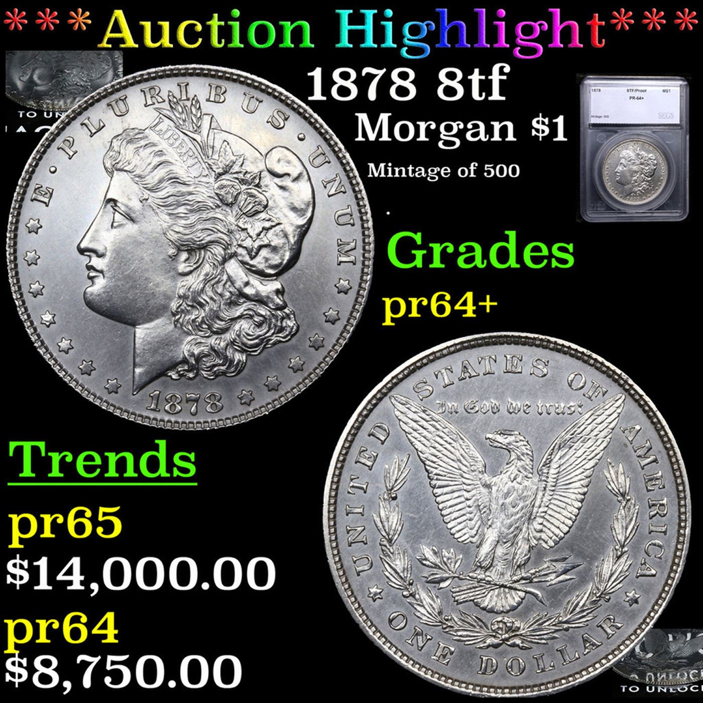 ***Auction Highlight*** 1878 8tf Morgan Dollar $1 Graded pr64+ BY SEGS. A Corey's Pick, Bid to Win, Don't let it get Away, you might not find its equal Coin