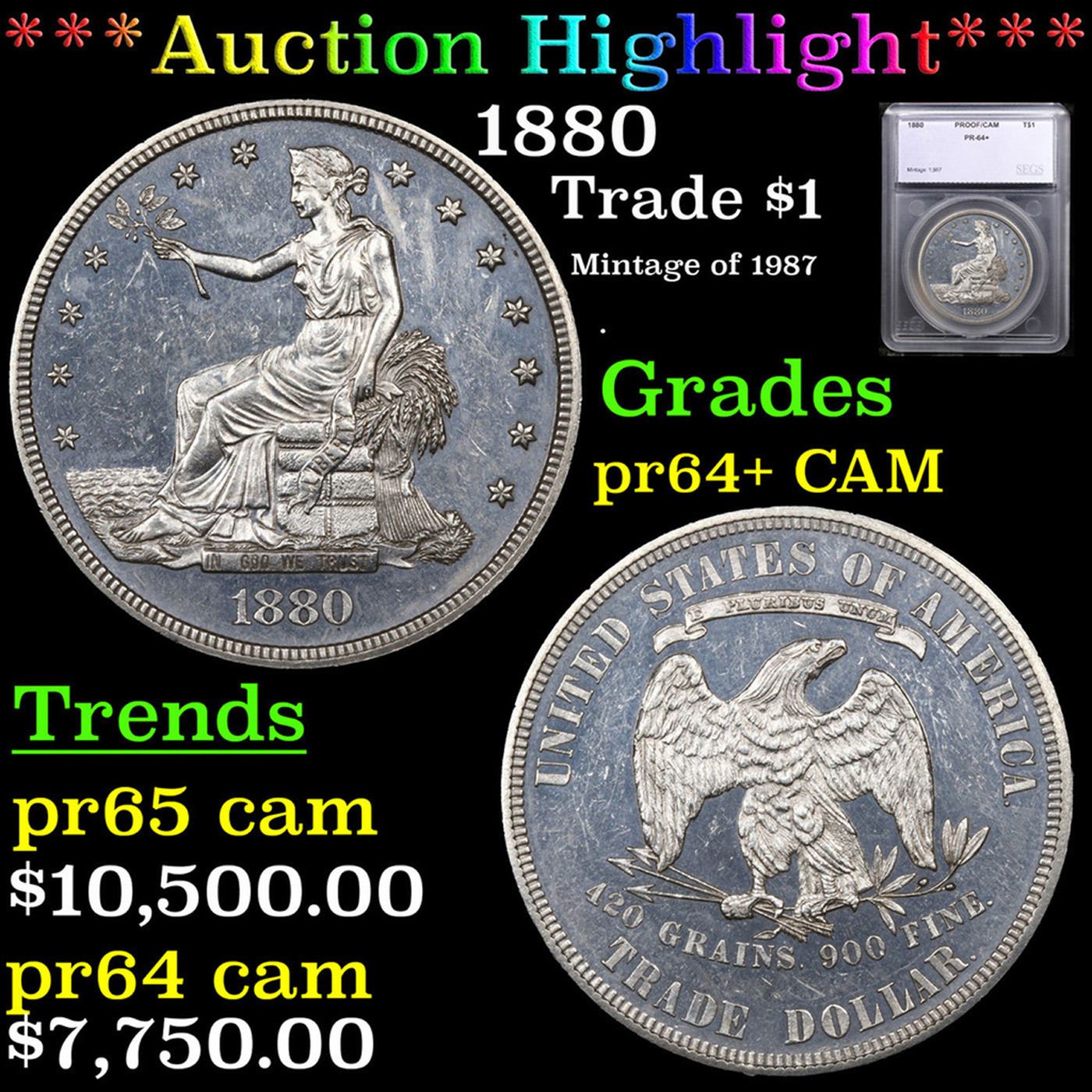 ***Auction Highlight*** 1880 Trade Dollar $1 Graded pr64+ CAM BY SEGS.