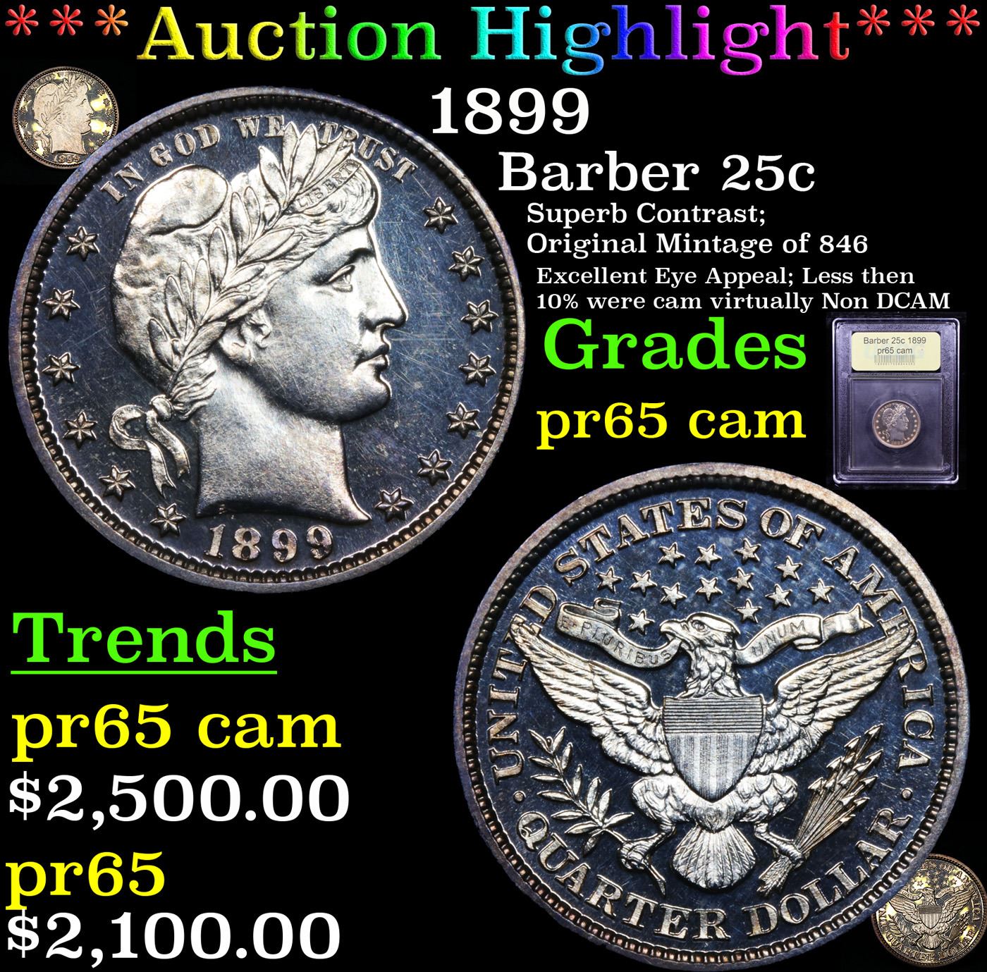 ***Auction Highlight*** 1899 Barber Quarter 25c Graded GEM Proof Cameo By USCG. A Corey's Pick, Bid to Win, Don't let it get Away, you might not find its equal Coin