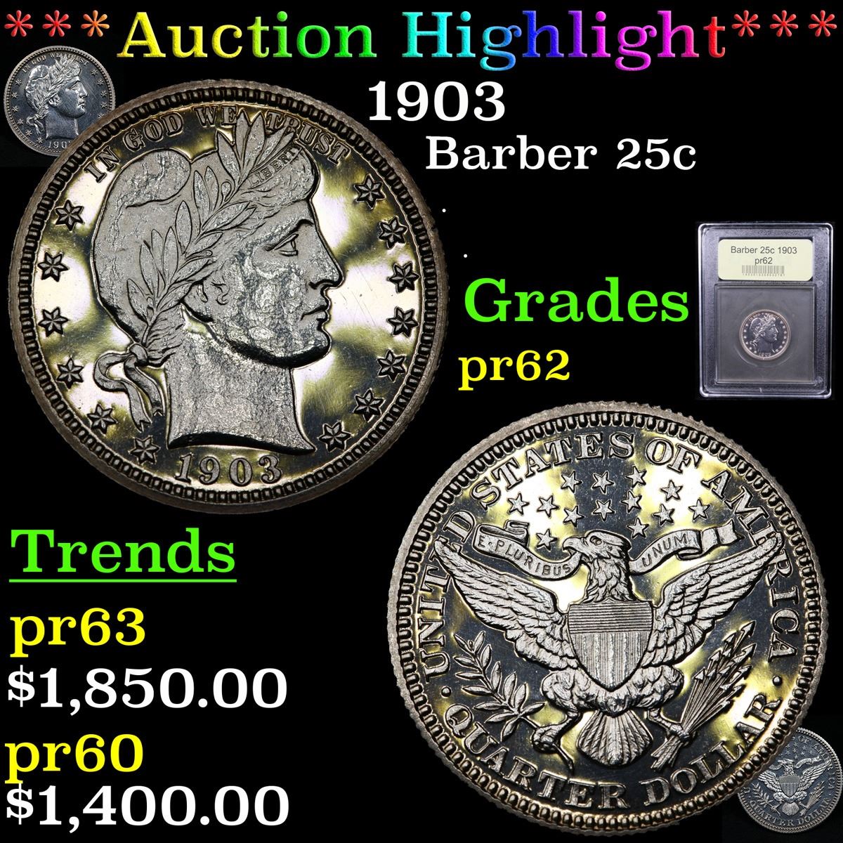 ***Auction Highlight*** 1903 Barber Quarter 25c Graded Select Proof By USCG. A Corey's Pick, Bid to Win Coin