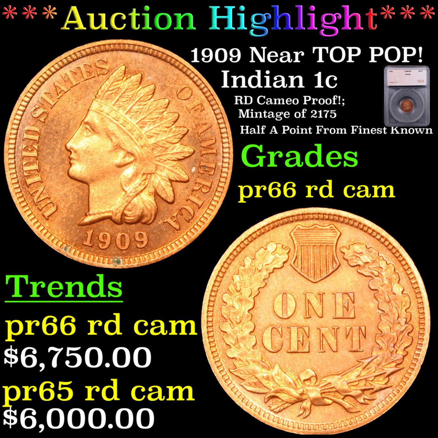 ***Auction Highlight*** 1909 Near TOP POP! Indian Cent 1c Graded pr66 rd cam By SEGS. A Key Date's Pick, Bid to Win, Don't let it get Away, you might not find its equal Coin