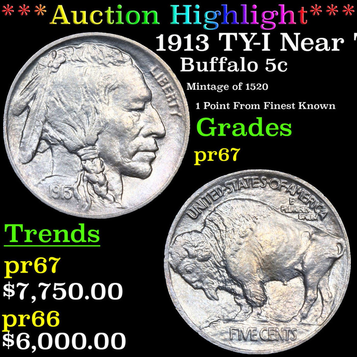 ***Auction Highlight*** 1913 TY-I Near TOP POP! Buffalo Nickel 5c Graded pr67 By SEGS. A Key Date's Pick, Bid to Win, Don't let it get Away Coin