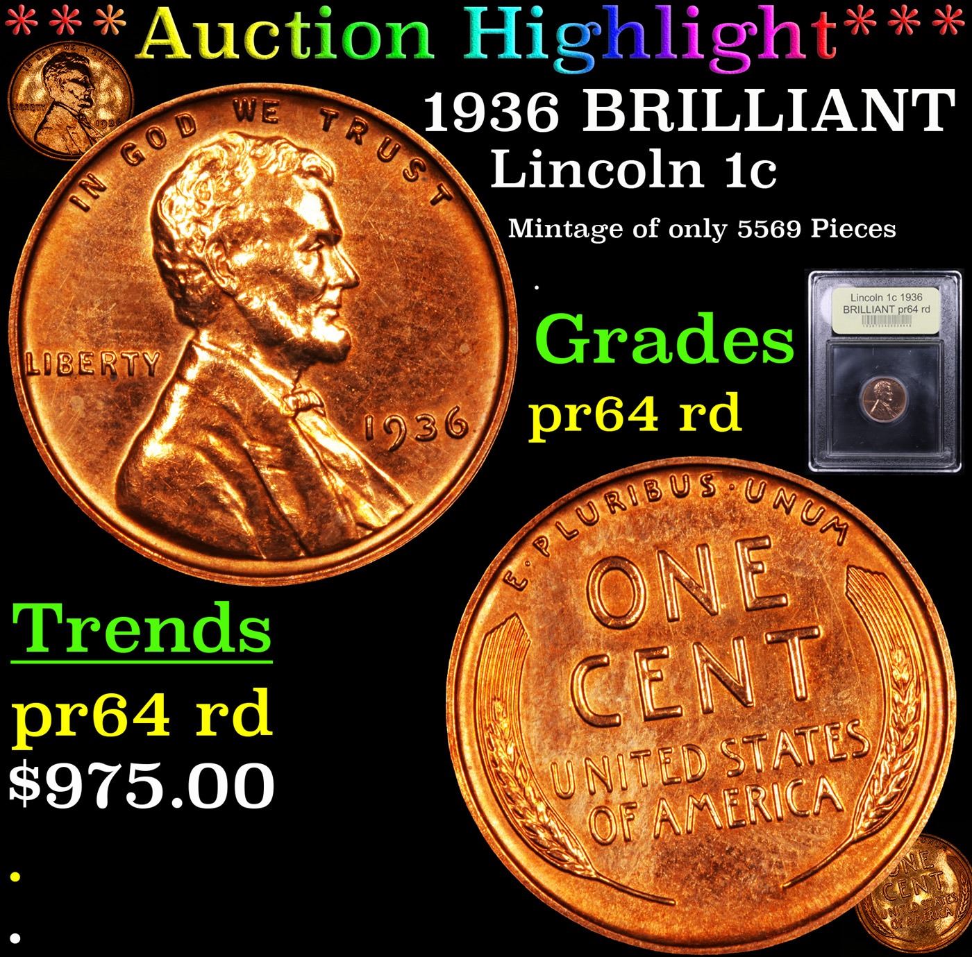 ***Auction Highlight*** 1936 BRILLIANT Lincoln Cent 1c Graded Choice Proof Red By USCG.         A Corey's Pick, Bid to Win Coin